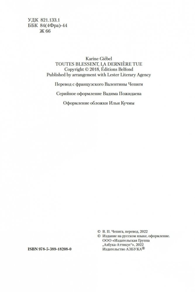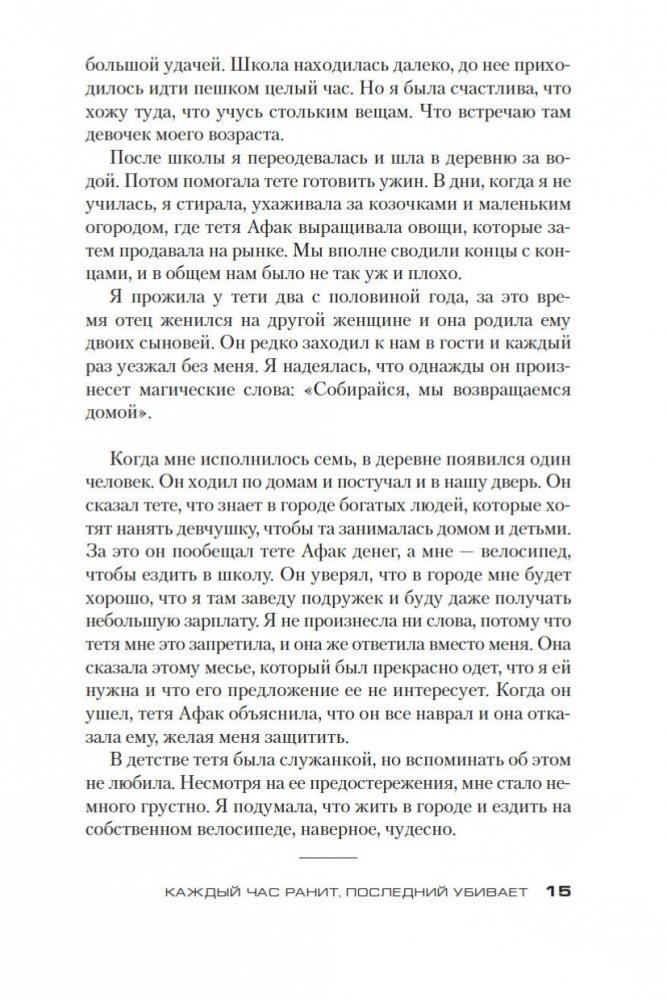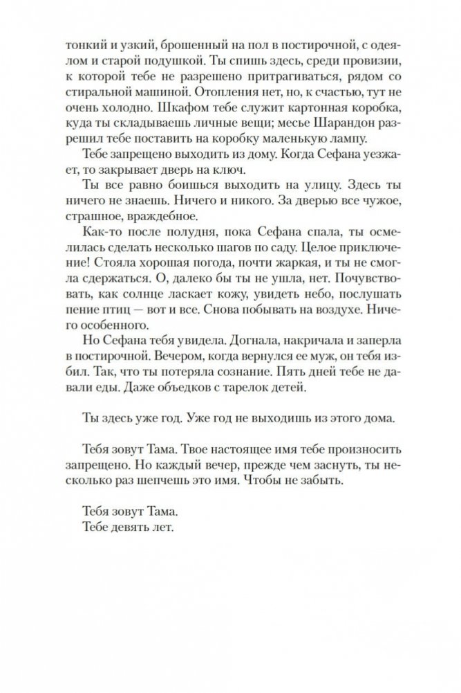 Тама с восьми лет обслуживает богатую семью, не имеет права выйти из дома, терпит побои, умудряется оставаться живым человеком в нечеловеческих условиях и мечтает о свободе, не помня, что это такое. Безымянная тяжелораненая девушка заявляется в дом неуравновешенного горюющего отшельника Габриэля, не помня о себе вообще ничего. Отшельник, увы, о себе помнит всё и со своими воспоминаниями расправляется кроваво, потому что они его убивают. Всем троим предстоит освобождаться из рабства — буквального и метафорического, — и в итоге каждый отыщет свой непростой путь к свободе. Книги королевы триллера Карин Жибель переведены на десяток языков и удостоены многочисленных литературных наград, в том числе Prix Polar за лучший роман на французском языке. За роман «Каждый час ранит, последний убивает» она получила «Золотое перо французского триллера» и Prix de l’Evêché. Этот роман Жибель написала по мотивам реальных историй женщин, лишившихся свободы и столкнувшихся с крайними формами насилия, — и получился триллер о человеческой жестокости, искуплении и личной свободе, которая стоит очень дорого и порой оплачивается только кровью. Впервые на русском!