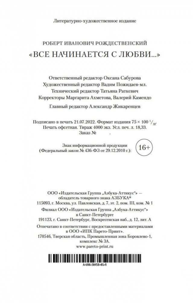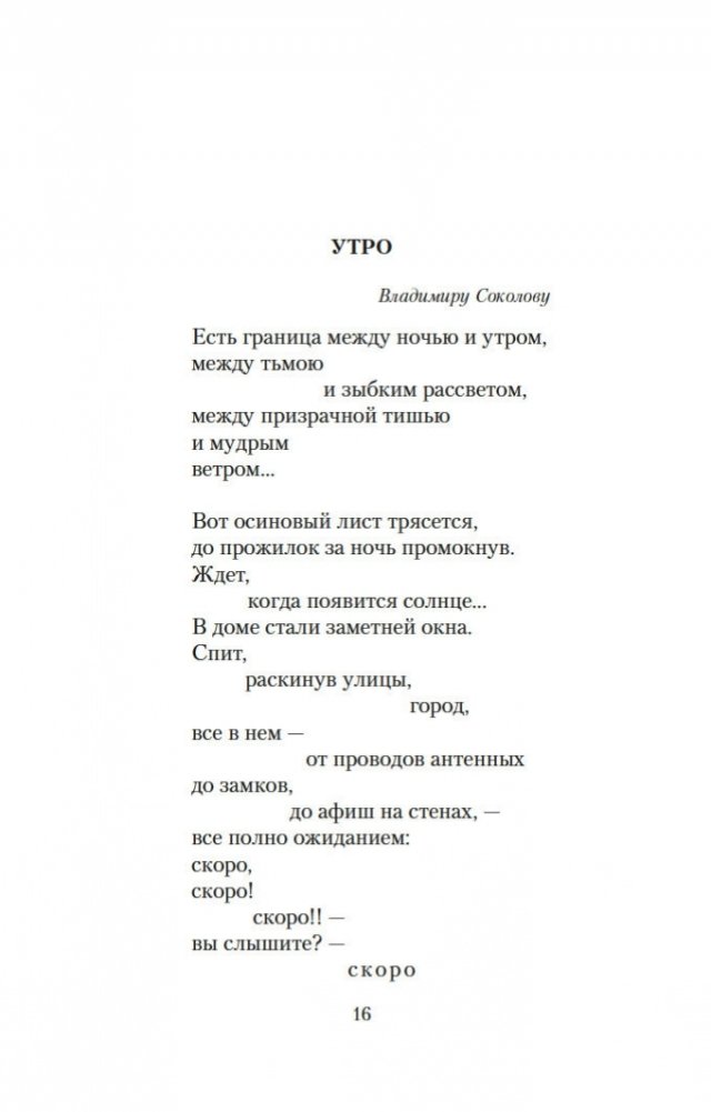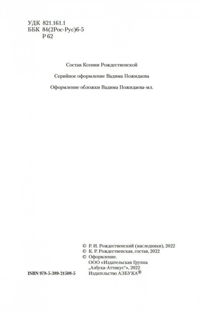 Роберт Рождественский — один из самых известных русских поэтов второй половины ХХ века. Наряду с Е. Евтушенко, Б. Ахмадулиной, А. Вознесенским и Б. Окуджавой Рождественский вошел в «главную поэтическую обойму» поколения шестидесятников и стал символом «оттепели», эпохи свободы и романтических надежд на светлое будущее. Гражданственность и пафос, которые отличают многие стихи Роберта Рождественского, соединились в его творчестве с глубоко личным отношением ко всему происходящему, кристальной искренностью и чистотой душевных переживаний. «То, что я делал, я делал всегда честно. У меня никогда не было строчек от лукавого…» — с полным правом мог сказать о себе поэт. Стихи Роберта Рождественского нашли отклик у миллионов читателей, его книги выходили огромными тиражами, а песни, положенные на его строки с их особой щемящей интонацией, знала наизусть вся страна; большинство из этих песен поют до сих пор. Среди них «Мгновения», «Эхо любви», «Огромное небо», «Придет и к вам любовь», «Притяженье земли», «Песня о далекой родине», «Мои года» и многие другие.