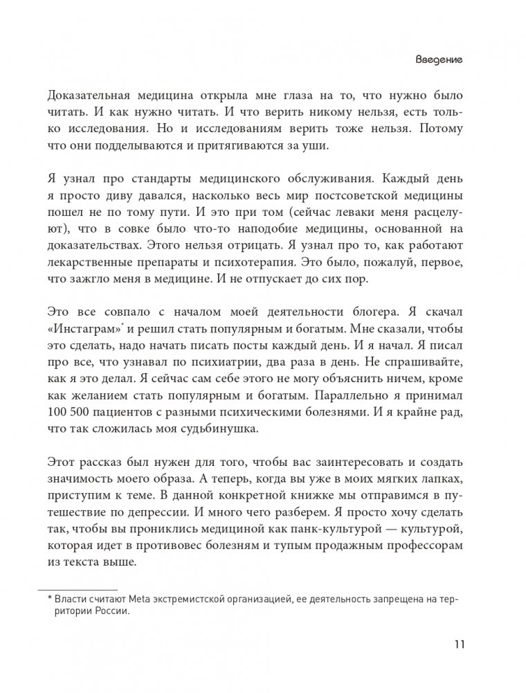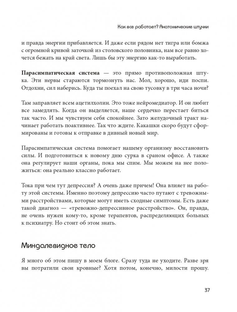 С юмором, наукой и любовью доктор Сычев объясняет, что происходит в вашем черепе. Настоящий магистр психотерапии говорит о сложных вещах, не стесняясь в выражениях и срывая маски стигматизации. Он рассказывает вам о процессе переучивания вашего мозга, чтобы вы больше не испытывали тревогу, депрессию, невроз и панику. Благодаря техникам, которые можно применить самостоятельно, вы сможете победить травму и не пустите переживания в свое сердце. Кирилл Сычев возьмет вас в путешествие по депрессии и сделает так, чтобы вы прониклись медициной как панк-культурой — культурой, которая идет в противовес болезням.