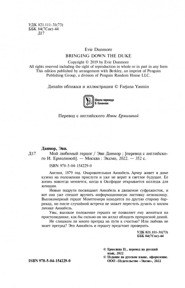 Эви Данмор создала свой дебютный роман «Мой любимый герцог», вдохновленная волшебными пейзажами Оксфорда и страстью к романтике, интересом к судьбам женщинам с передовыми взглядами и викторианской эпохе. В обычной жизни она консультант в сфере дипломатии, имеет степень магистра, которую получила в Оксфорде. Эви Данмор является членом Британской ассоциации романтических прозаиков (RNA). Писательница живет в Берлине и свое увлечение Англией XIX века отражает в своих произведениях.