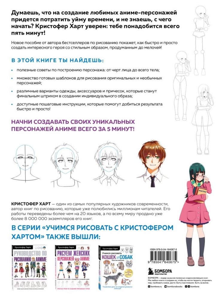 Фанат аниме, один из самых популярных художников и автор книг-бестселлеров по рисованию, которые уже помогли миллионам читателей по всему миру, расскажет и покажет тебе, как экономить время и силы при создании персонажей, вместе с тем придавая изюминку их образам. Под одной обложкой собраны советы и шпаргалки по всем ключевым этапам создания аниме-героя: строению тела, выражению самых разных эмоций, рисованию стильного аниме-образа, причесок и многое другое! Все это поможет тебе создавать абсолютно разных и непохожих друг на друга персонажей, а забавные комментарии и шутки автора не дадут заскучать.