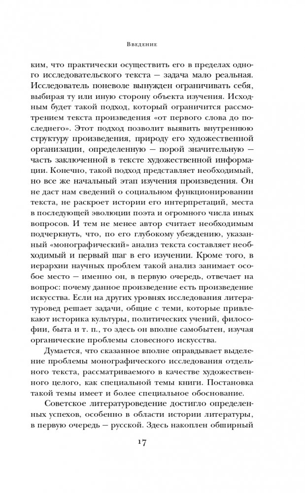 В своей монографии автор ставит в центр изложения вопросы методики анализа поэтического текста и стиха. Его цель — не только ознакомить читателя с результатами, полученными тем или иным ученым, сколько вооружить его методами, которые позволили бы ему самостоятельно обнаружить скрытые смыслы любимых художественных и поэтических текстов.