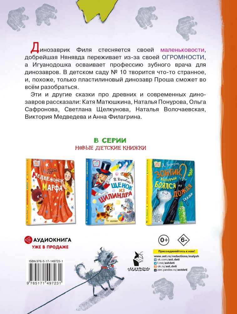 Эти и другие сказки про древних и современных динозавров рассказали: Катя Матюшкина, Наталья Понурова, Ольга Сафронова, Светлана Щелкунова, Наталья Волочаевская, Виктория Медведева и Анна Филагрина.