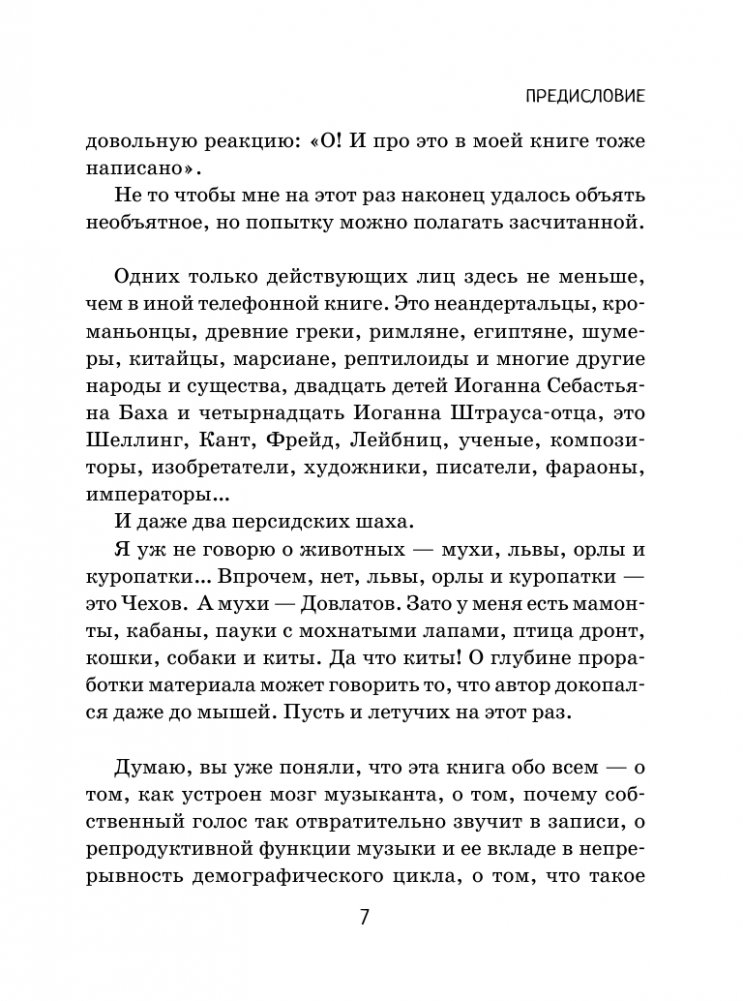 Эта книга обо всем — о том, как устроен мозг музыканта, о том, почему собственный голос так отвратительно звучит в записи, о том, что такое абсолютный слух, как устроена нотная запись, какие гигантские пласты информации можно извлечь из простой программки, которую вы купили перед концертом, о том, какой голос был у Чайковского и Толстого, и это я уж не говорю о том, что древнегреческие философы, которые только что были, казалось бы, все на одно лицо, станут для вас просто как родные.