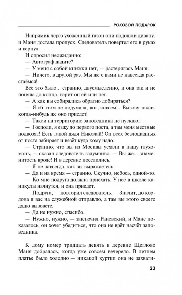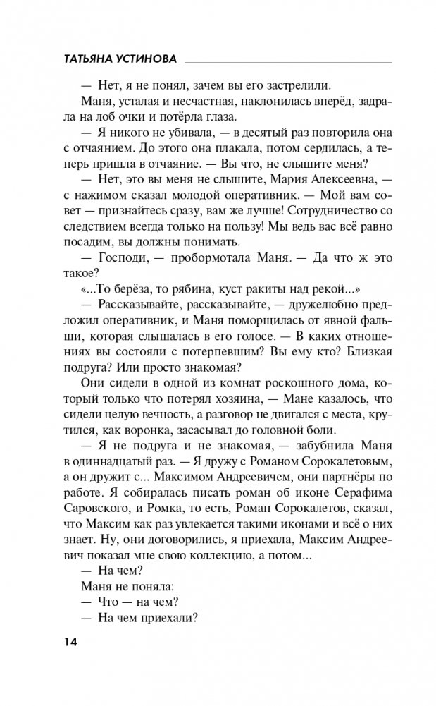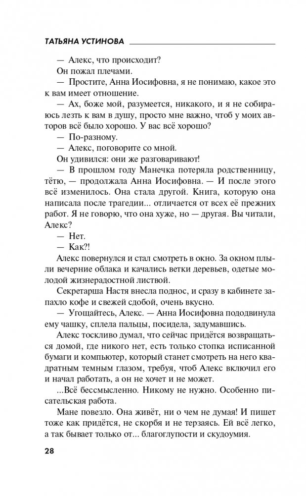 Маня начинает расследование, и оказывается, что жизнь Максима - так зовут убитого, - на самом деле была вовсе не такой уж идеальной!.. Писательница и сам не рада, что ввязалась в такое опасное и неоднозначное предприятие…