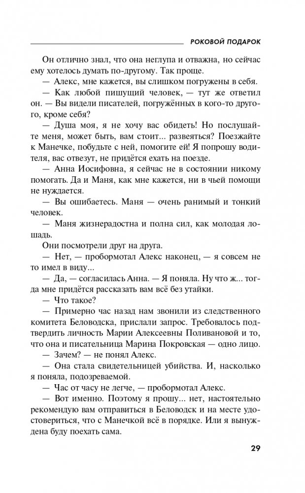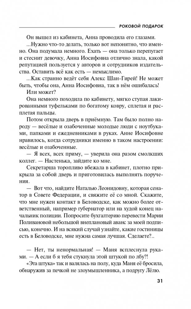 Татьяна Устинова, блистательная и неповторимая звезда отечественного детектива, и издательство «Эксмо» представляют долгожданную новинку — остросюжетный роман «Роковой подарок».