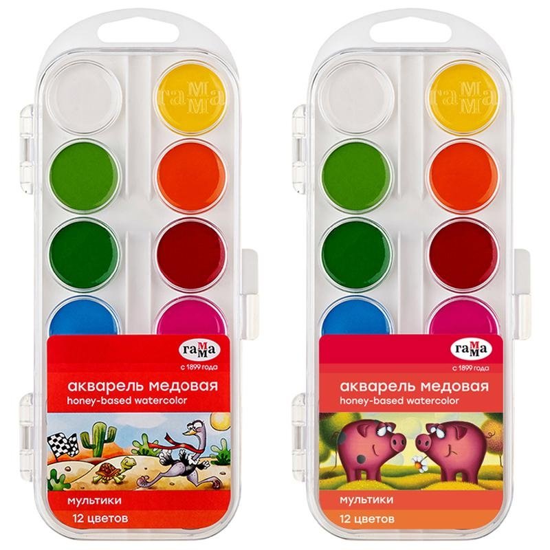 Акварель Гамма "Мультики" NEW, медовая, 12 цветов, без кисти, пластик. упак., европодвес