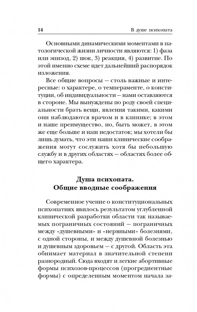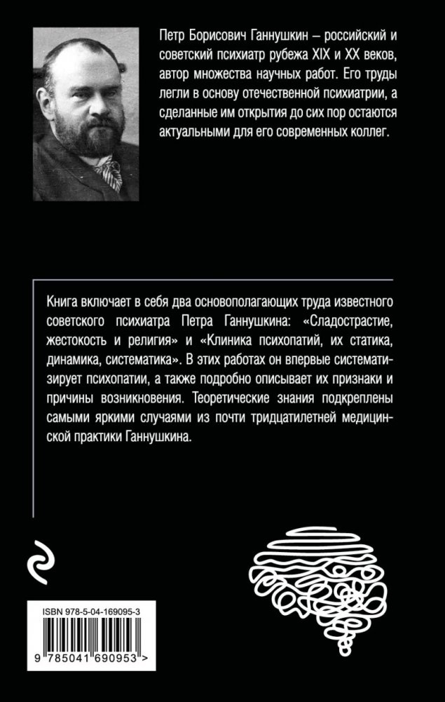 Данная книга включает в себя два основополагающих труда известного советского психиатра Петра Ганнушкина: «Сладострастие, жестокость и религия» и «Клиника психопатий, их статика, динамика, систематика». В этих работах он впервые систематизирует психопатии, а также подробно описывает их признаки и причины возникновения. Теоретические знания подкреплены самыми яркими случаями из почти тридцатилетней медицинской практики Ганнушкина.