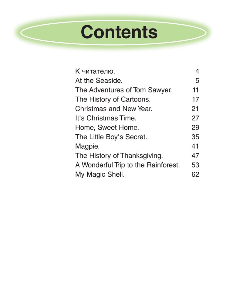 Пособие содержит сказки, стихотворения, а также рассказы об истории создания мультфильмов и о том, как празднуются Рождество и День благодарения.