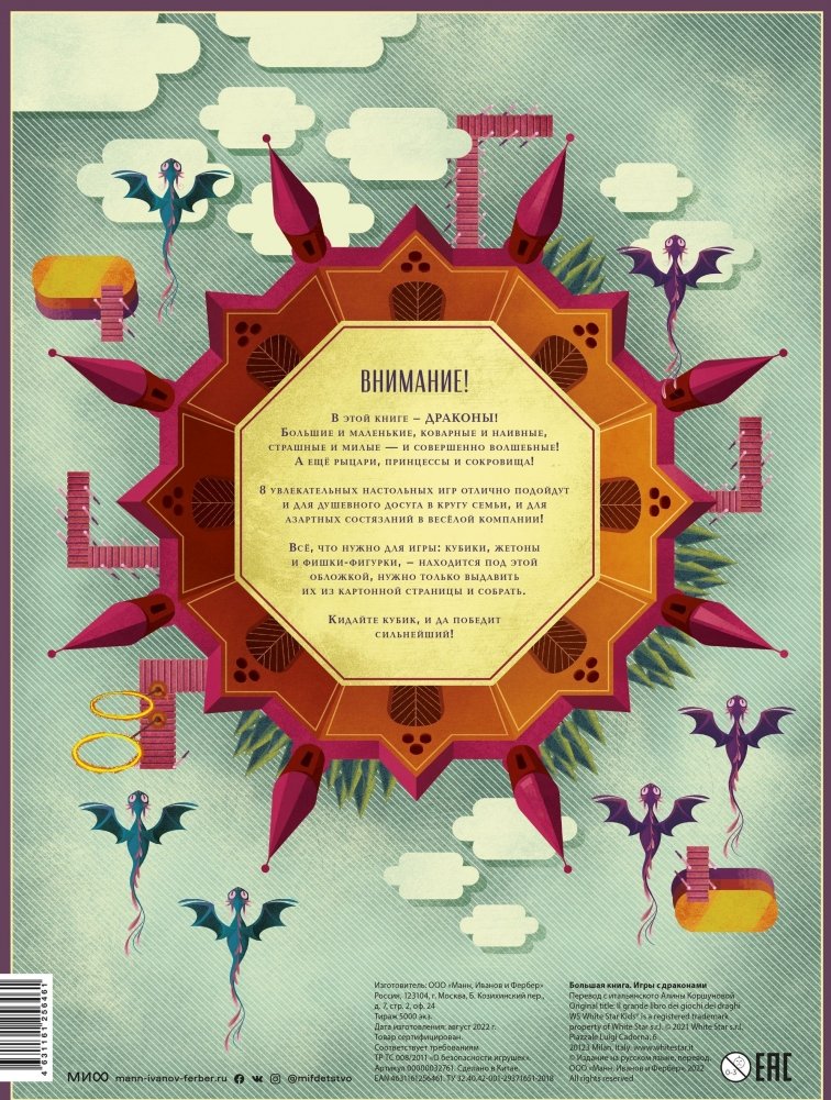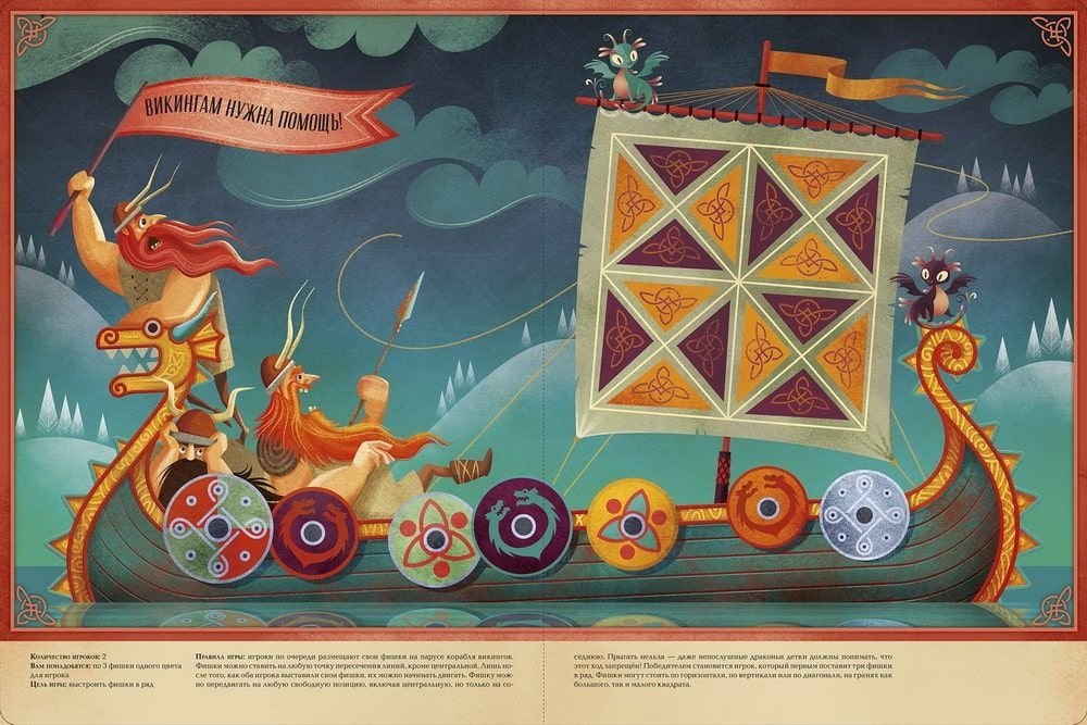 Книга с 8 настольными играми под одной обложкой унесет вас в загадочный и волшебный мир драконов и викингов! Вам предстоит пройти через запутанный лабиринт, найти сокровище, сразиться с драконом и вызволить из башни прекрасную принцессу. Восемь разворотов — восемь игровых полей, каждое из которых увлечет всю семью в новый удивительный мир, созданный иллюстратором Анной Ланг. Все фишки и фигурки, а также самосборный кубик уже входят в книгу: играть можно дома, в гостях и даже в дороге.