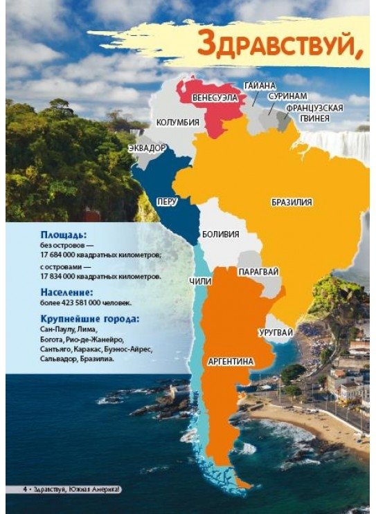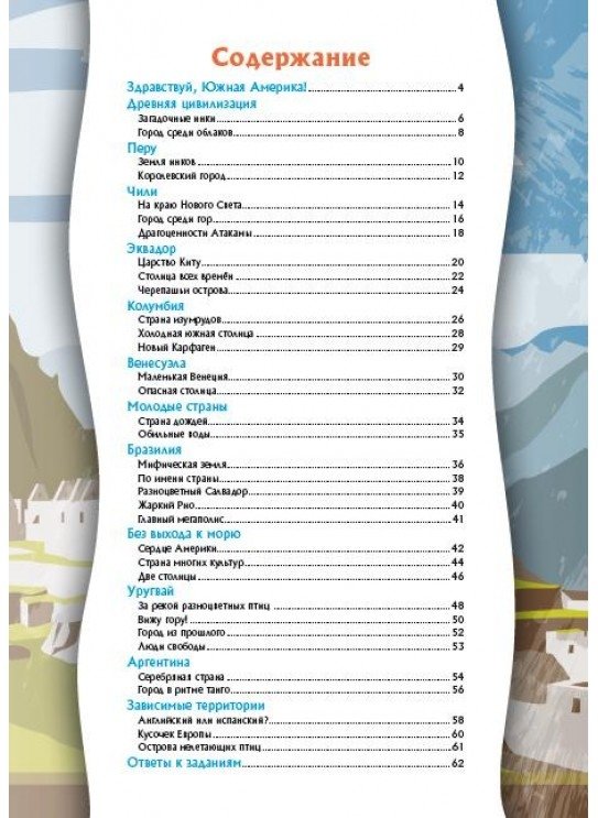В очередной книге серии «Мир путешествий» читатель отправится в захватывающее путешествие по Южной Америке и ближайшим к ней островам. Сопровождать его будут уже знакомые персонажи Алёна и Максим, которые расскажут о самом интересном: о народах и их культуре, о достижениях и рекордах, о необычных животных и памятниках природы…