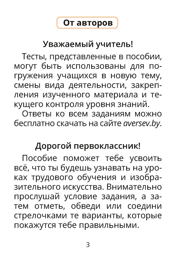Пособие содержит тесты по двум предметам — трудовому обучению и изобразительному искусству. Тесты могут быть использованы на уроках для знакомства с новыми темами, закрепления полученных знаний, проверки уровня усвоения материала учащимися, обобщения и систематизации изученного.