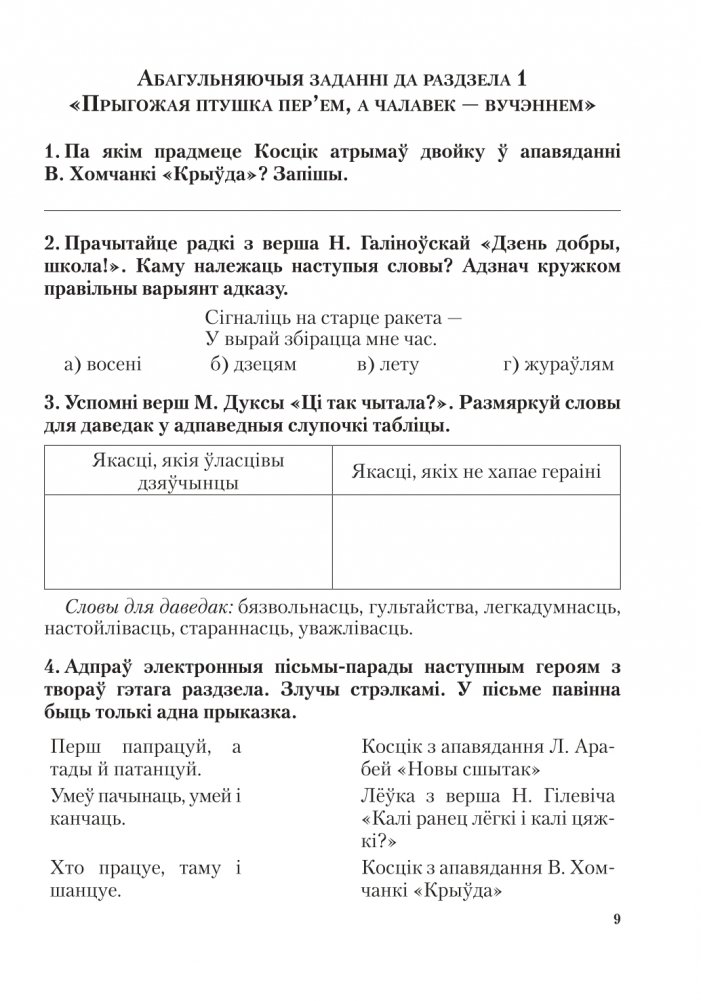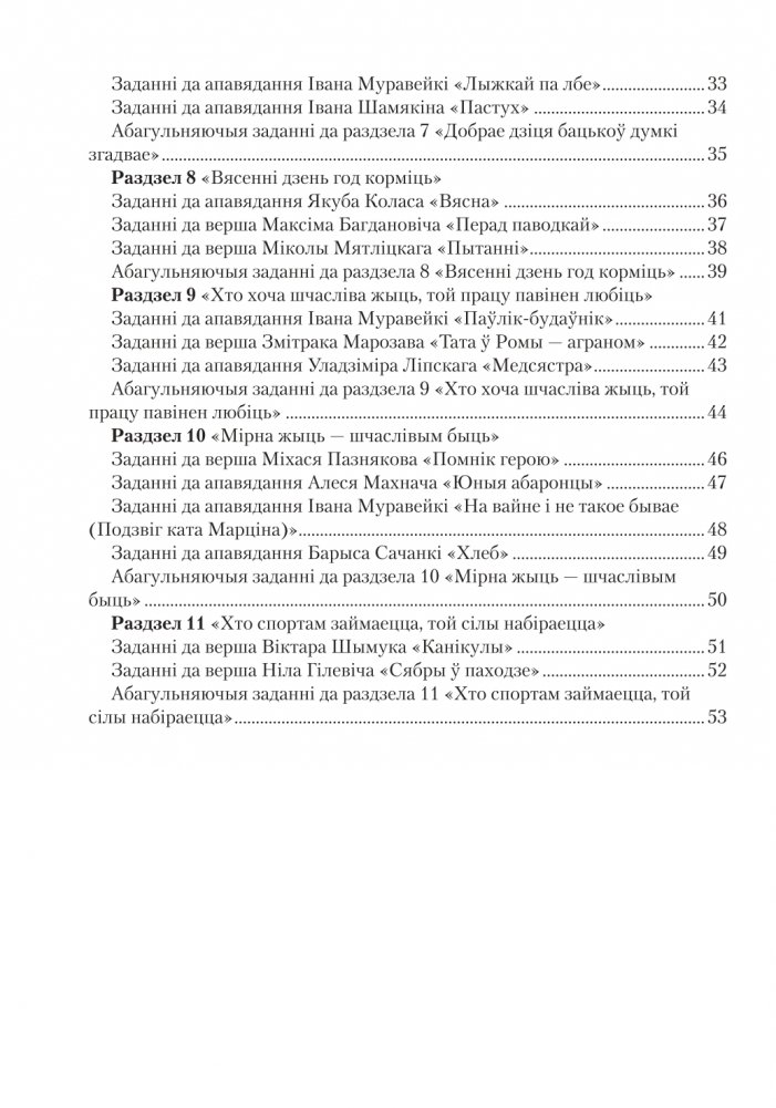 Заданні складзены да большасці твораў дапаможніка. Акрамя таго, прапануюцца таксама заданні абагульняючага характару. Заданні прадстаўлены ў выглядзе картак для індывідуальнай, групавой і калектыўнай работы.