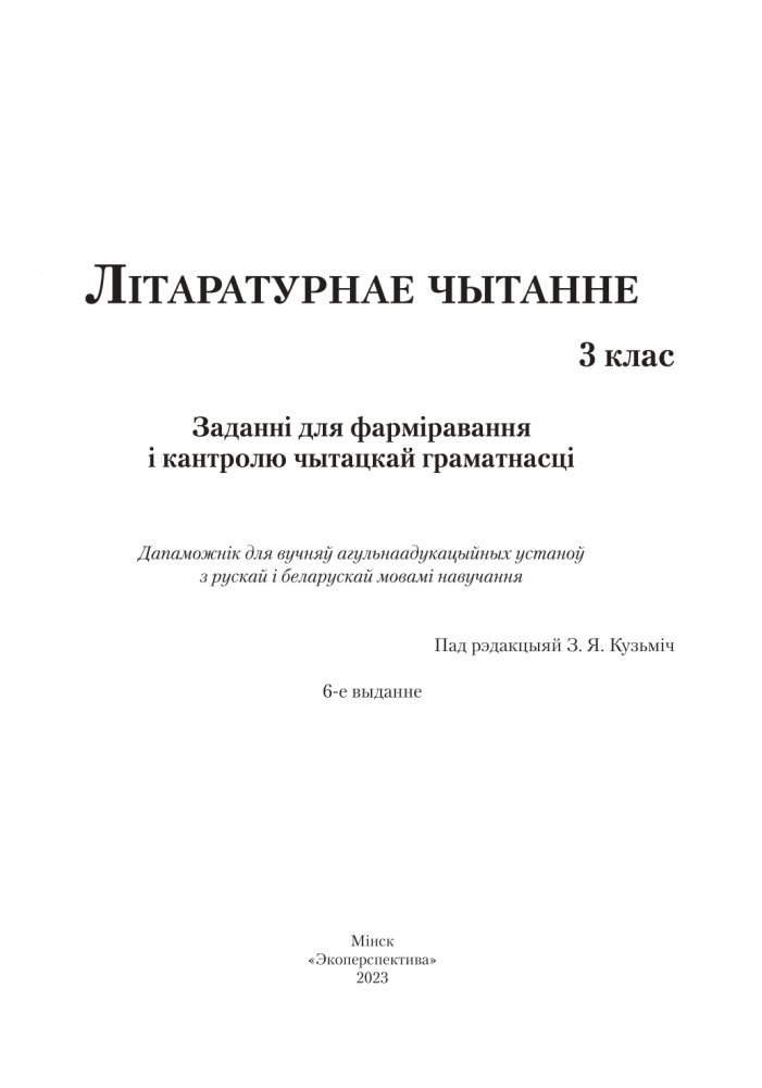 Літаратурнае чытанне. 3 клас. Заданні для фарміравання і кантролю чытацкай граматнасці