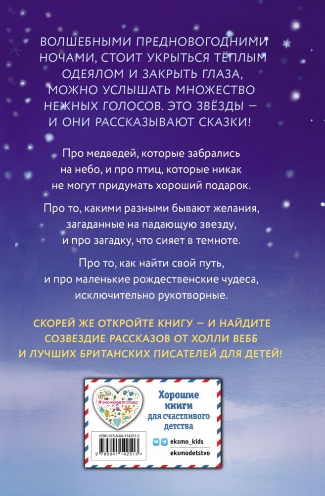 Каждый Новый год мы ждём счастья и чудес. И хорошая книга — немаловажная часть зимней магии. Про птиц и зверей, про добрых волшебников и замечательные подарки — здесь вас ждут десять историй, десять сказок от звёзд британской литературы. Среди них есть и новая истории от обожаемой в России Холли Вебб!