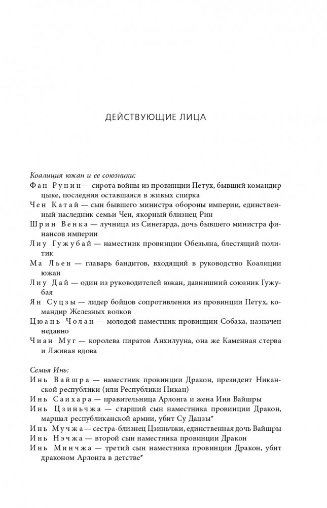 После кровавых сражений с остатками мугенской армии и союзниками гесперианцев, желающих присвоить никанские богатства, Рин снова остается ни с чем. Преданная и искалеченная, она бежит из Арлонга, чтобы собраться с силами и ударить по врагу. Но ее новые союзники в руководстве Южной коалиции лукавы и ненадежны, Рин быстро понимает, что настоящая сила в Никане — это миллионы простых людей, которые жаждут мести и почитают ее как богиню спасения.