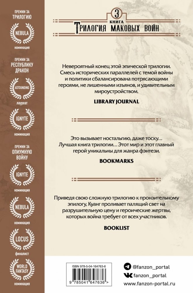 Эффектное завершение трилогии «Опиумной войны», нашумевшего, отмеченного наградами эпического фэнтези Ребекки Куанг, которое сочетает в себе историю Китая как Средних веков, так и недавнего прошлого, с опасным миром богов и монстров.