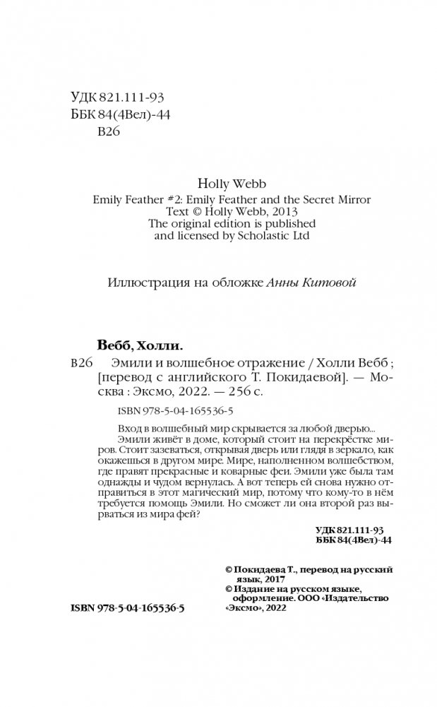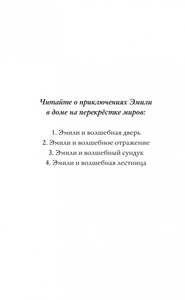 Эмили живёт в доме, который стоит на перекрёстке миров. Стоит зазеваться, открывая дверь или глядя в зеркало, как окажешься в другом мире. Мире, наполненном волшебством, где правят прекрасные и коварные феи. Эмили уже была там однажды и чудом вернулась. А вот теперь ей снова нужно отправиться в этот магический мир, потому что кому-то в нём требуется помощь Эмили. Но сможет ли она второй раз вырваться из мира фей?