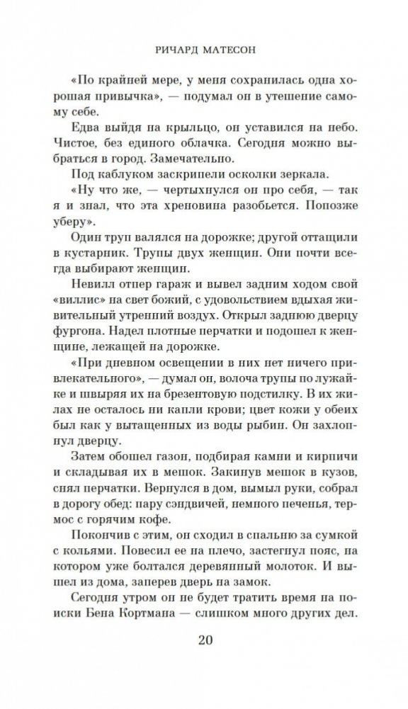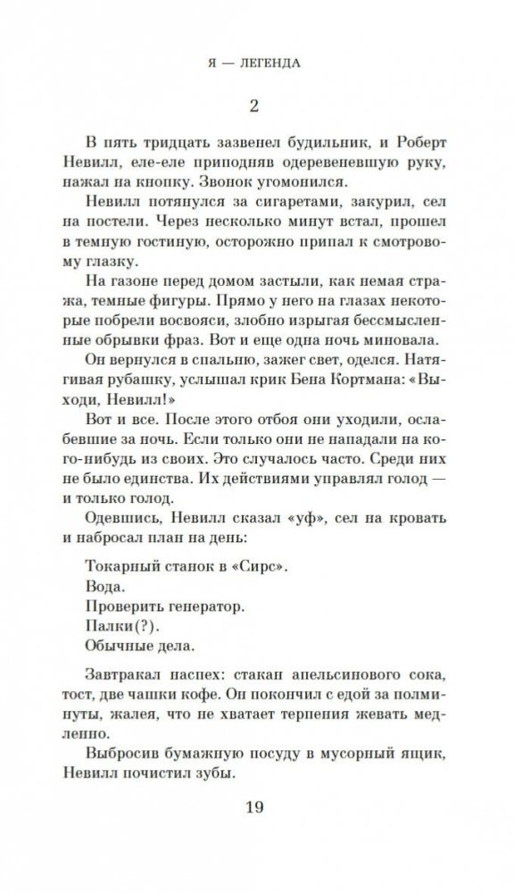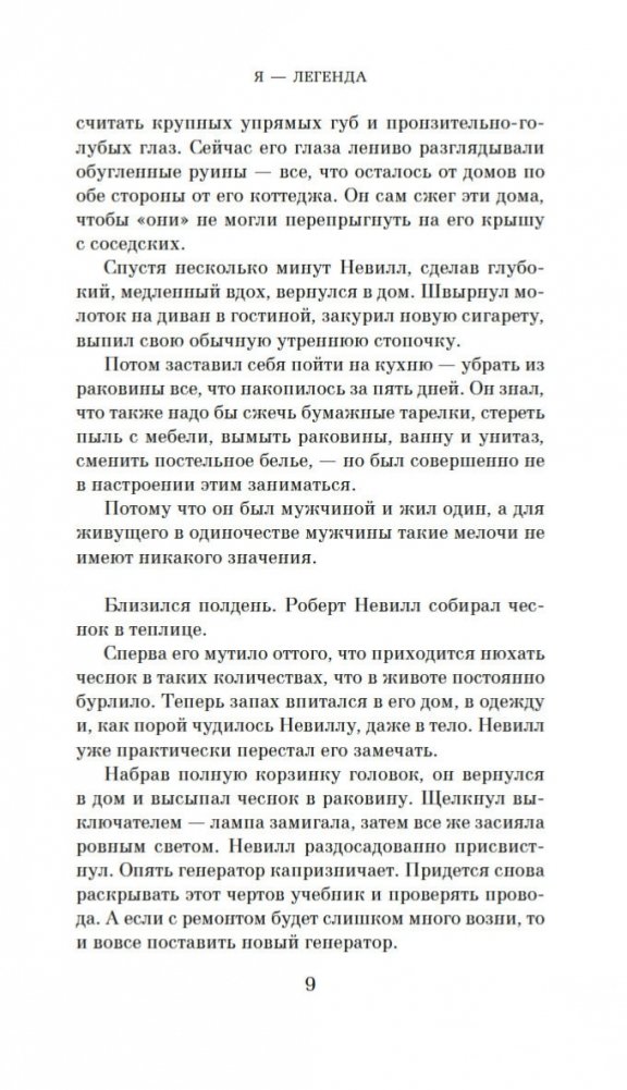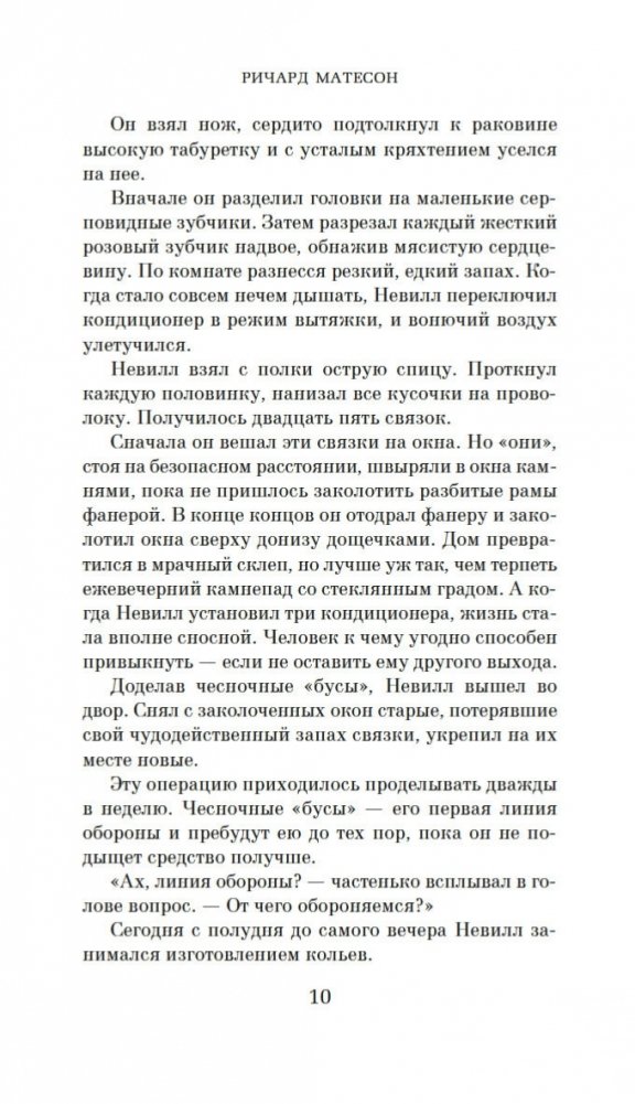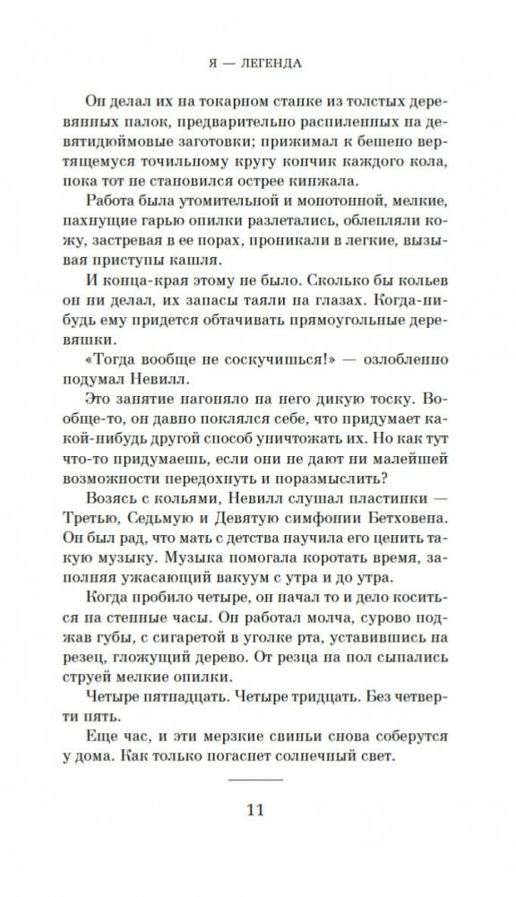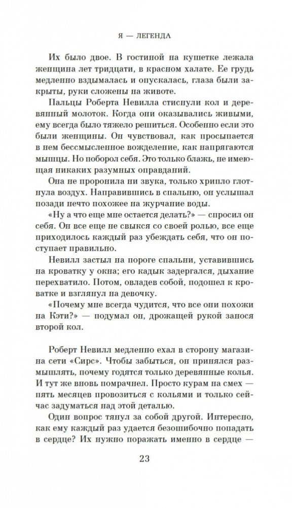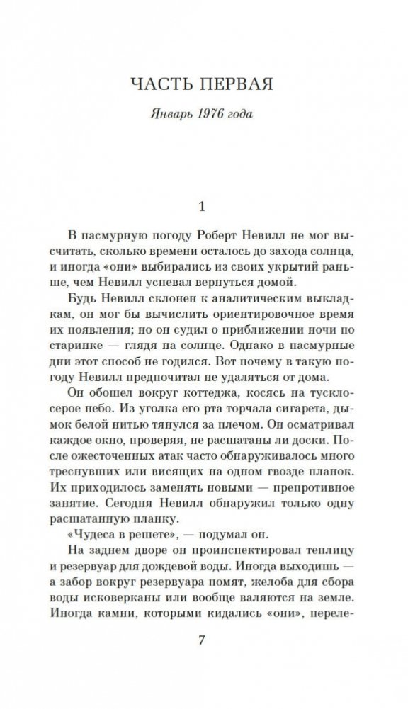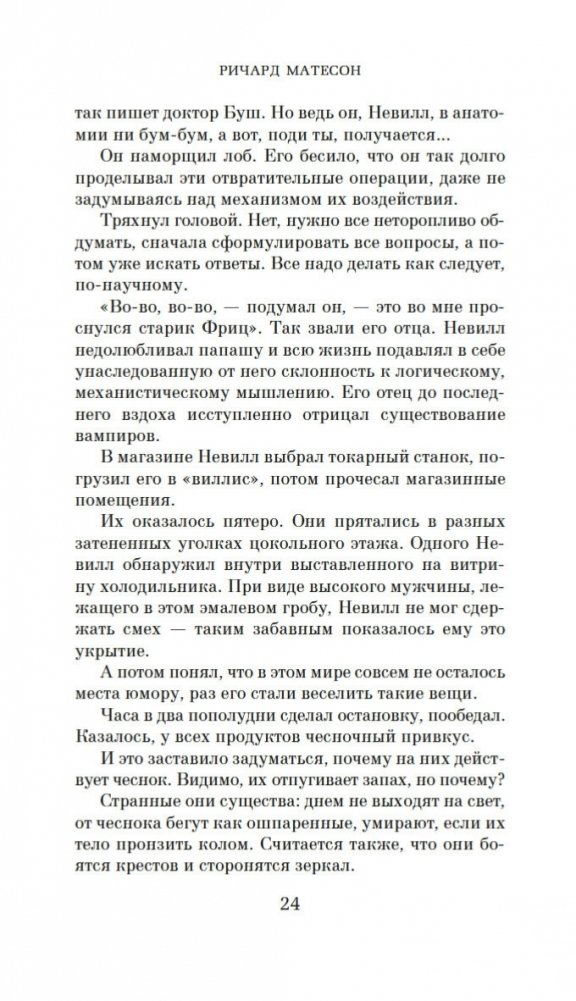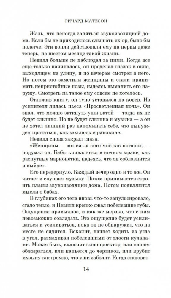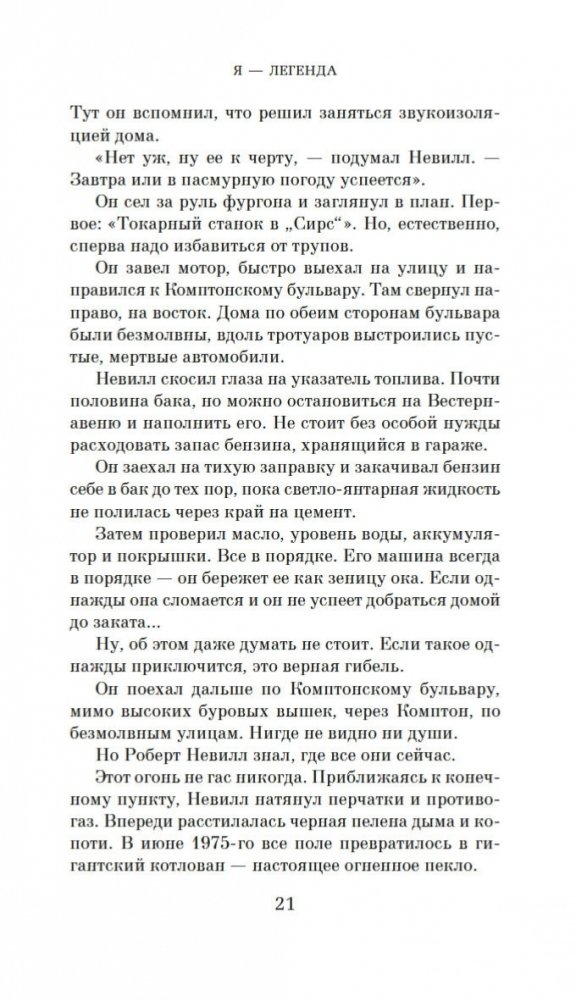 «Я — легенда» Ричарда Матесона — книга поистине легендарная, как легендарно имя ее создателя. Роман породил целое направление в литературе, из него выросли такие мощные фигуры современного литературного мира, как Рэй Брэдбери, Стивен Кинг… — двух этих имен достаточно для оценки силы влияния. Лучшие режиссеры планеты — Стивен Спилберг, Роджер Корман и другие — поставили фильмы по произведениям Матесона. Второй роман, вошедший в эту книгу, «Невероятный уменьшающийся человек», не менее знаменит, чем первый. Человек — песчинка перед темной мощью природы, но и эта малая молекула жизни всеми силами должна защищать себя, чтобы доказать и себе, и миру свое право на земное существование.