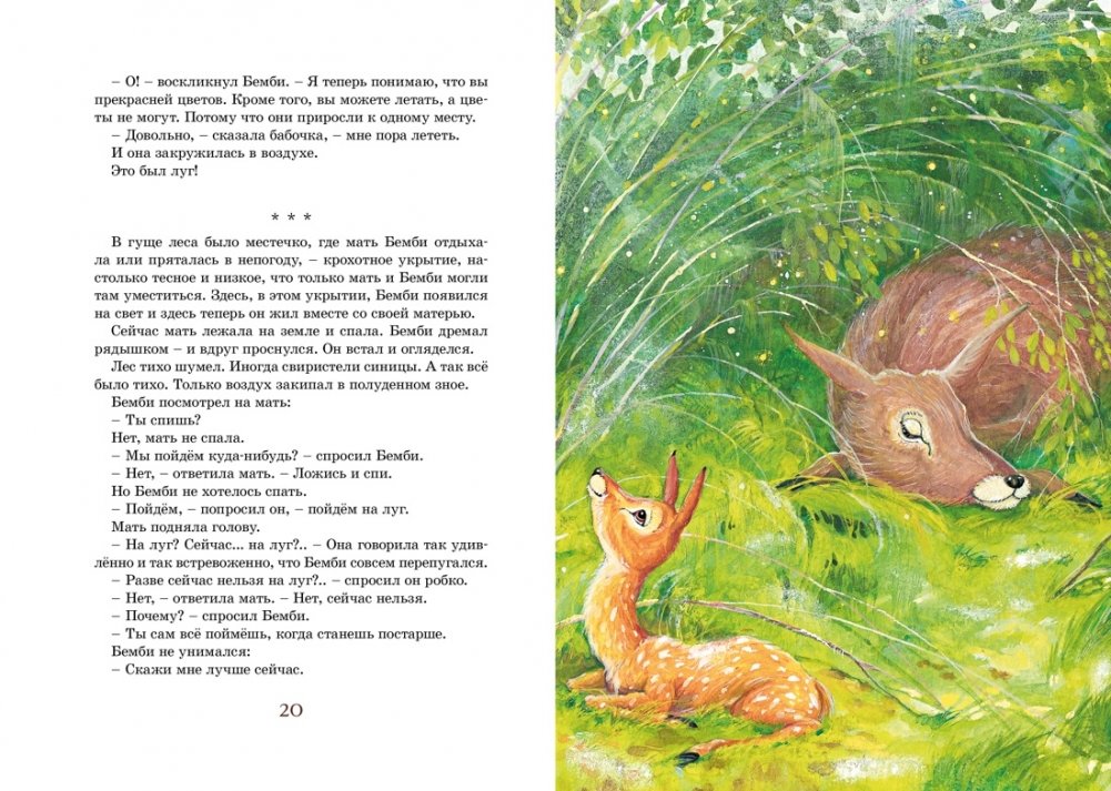 Сказочная повесть австрийского писателя Феликса Зальтена «Бемби» – про маленького оленёнка, который познаёт мир, такой большой и такой разнообразный. Только столкнувшись с человеческой жестокостью, он начинает понимать, что жизнь полна бед и опасностей и надо научиться их преодолевать. Книга знакомит с природой и прививает любовь к ней, а в добрых сердцах рождает чуткость и сострадание.