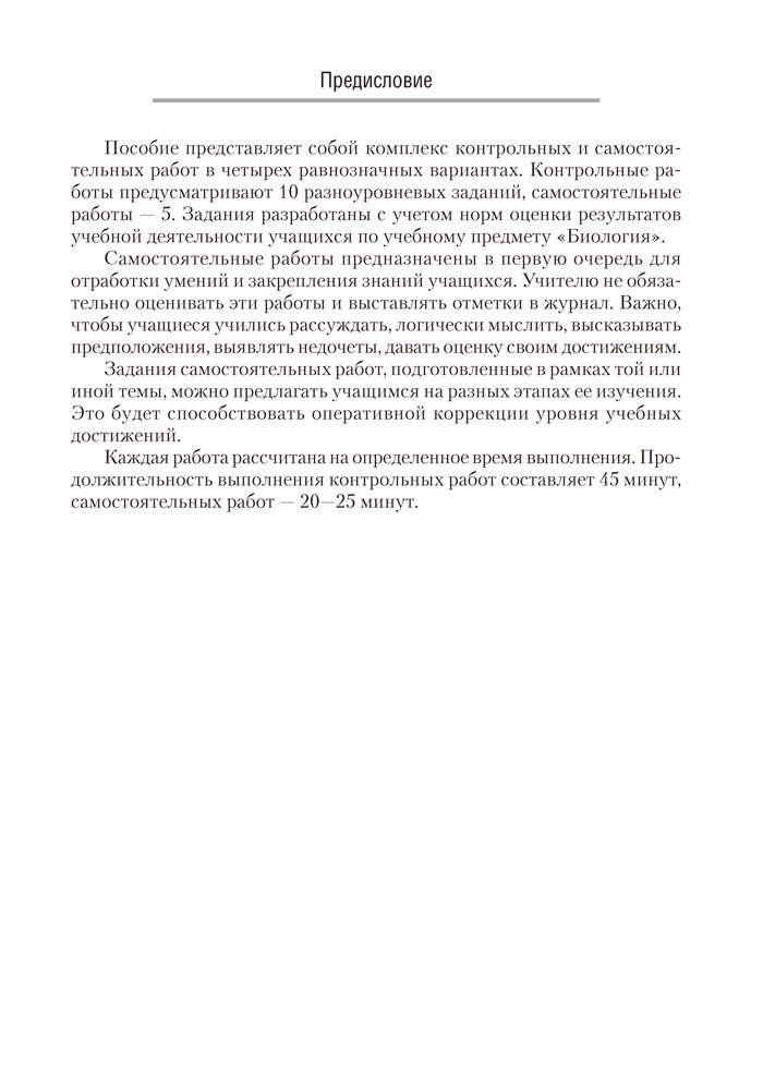 Сборник содержит контрольные и самостоятельные работы по биологии для 7 класса, представленные в четырех вариантах. Все варианты включают разноуровневые задания, которые разработаны согласно нормам оценки результатов учебной деятельности учащихся.