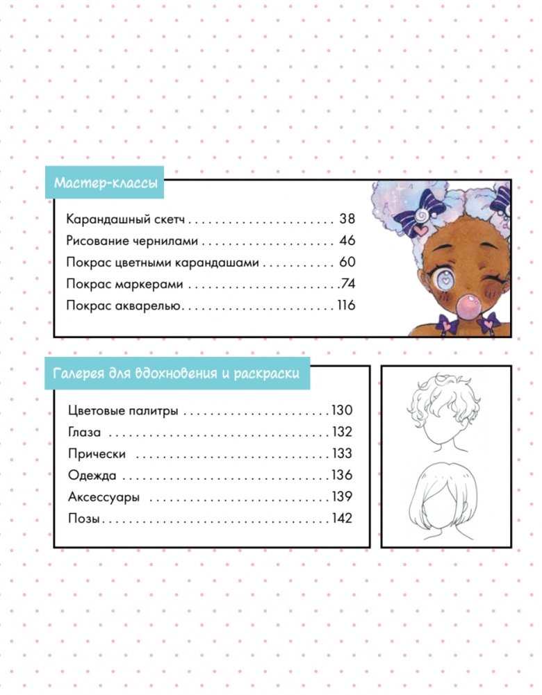 • найдешь 10+ идей причесок, одежды, аксессуаров и поз для оригинального персонажа.