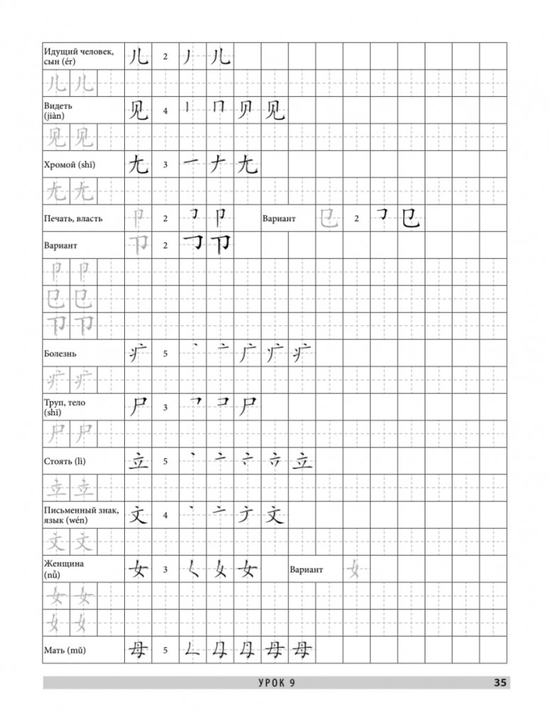 В этих обучающих прописях даны основы иероглифики китайского языка. В книге 16 уроков, каждый из которых состоит из теоретической части и прописей для отработки пройденной темы. Материал изложен от простого к сложному: сначала мы учимся писать иероглифические черты, затем осваиваем правила написания иероглифов, после этого переходим к изучению базовых иероглифических элементов — графем и заканчиваем сложными иероглифами.