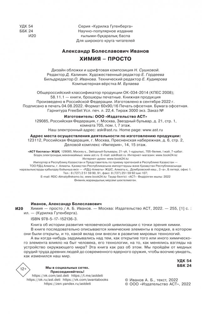 Книга об истории развития человеческой цивилизации с точки зрения химии. В книге последовательно описываются химические элементы в порядке, в котором они были открыты и какой вклад они внесли в развитие технологий на момент их открытия. Описывается: открытие, применение, некоторые забавные факты об элементе, основные свойства,которыми пользуется человек.