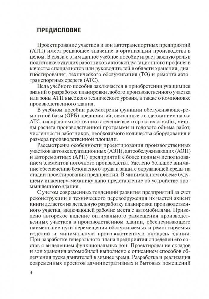 Рассмотрены система предприятий автомобильного транспорта, методы расчета основных технологических параметров и экономических показателей при проектировании предприятий, устройство производственного здания, обеспечение безопасности труда и защиты окружающей среды. Определены порядок и особенности разработки планировки производственного участка, компоновки производственного корпуса и составления генерального плана предприятия. Изложены особенности проектирования производственных участков и зон автоэксплуатационных, автообслуживающих и авторемонтных предприятий.