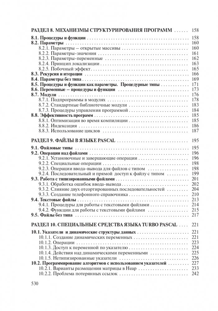 Представлено последовательное изложение основ программирования на примере языка Pascal. Рассматриваются структурная, модульная и объектно-ориентированная технологии программирования, методы проектирования и отладки программ, управляющие операторы, основные структуры данных и методы их обработки. Полностью соответствует типовой программе «Методы программирования и информатика» для научно-педагогического направления. Наряду с теоретическим изложением материала широко представлены иллюстративные примеры. Книга содержит задания для самостоятельной работы. Пособие также можно рекомендовать при подготовке школьников к олимпиадам по программированию.