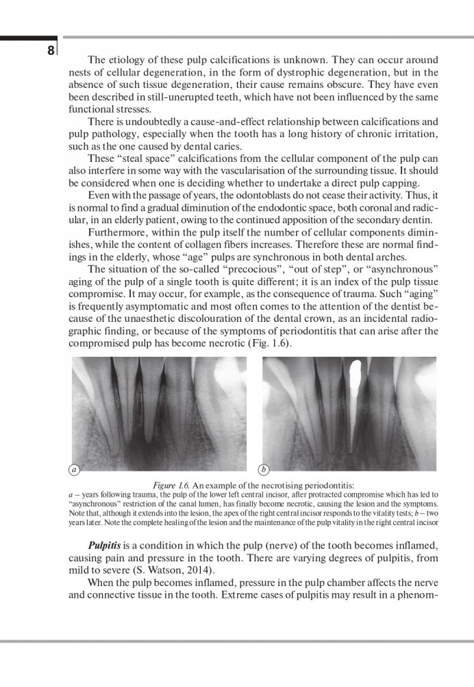 Изложены основные вопросы клинической эндодонтии. Освещены принципы диагностики состояния пульпы и верхушечного периодонта, современные представления об этиологии и патогенезе развития эндодонтической патологии, дано описание эндодонтического инструментария, а также современных методов лечения осложненного кариеса.