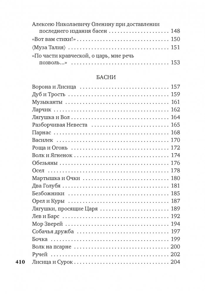 Иван Андреевич Крылов вошел в историю литературы прежде всего как величайший баснописец. Его короткие, поучительные, ироничные басни знают с самого детства и перечитывают с удовольствием. Меткие цитаты из них давно уже стали крылатыми выражениями, а персонажи Крылова полюбились многим поколениям читателей. «Конечно, ни один француз не осмелится кого бы то ни было поставить выше Лафонтена, но мы, кажется, можем предпочитать ему Крылова. Оба они вечно останутся любимцами своих единоземцев», — говорил Пушкин. Однако в творчестве Крылова представлены самые разные поэтические жанры: это и переложения псалмов, и философские размышления, и дружеские послания, и эпиграммы, и стихотворения на случай, и любовная лирика. Эти произведения занимают значительное место в настоящем издании и дают возможность читателям познакомиться с разными гранями таланта Крылова — поэта, который не только ввел в литературный обиход народную речь, но и во многом предвосхитил более поздние открытия русской лирики.