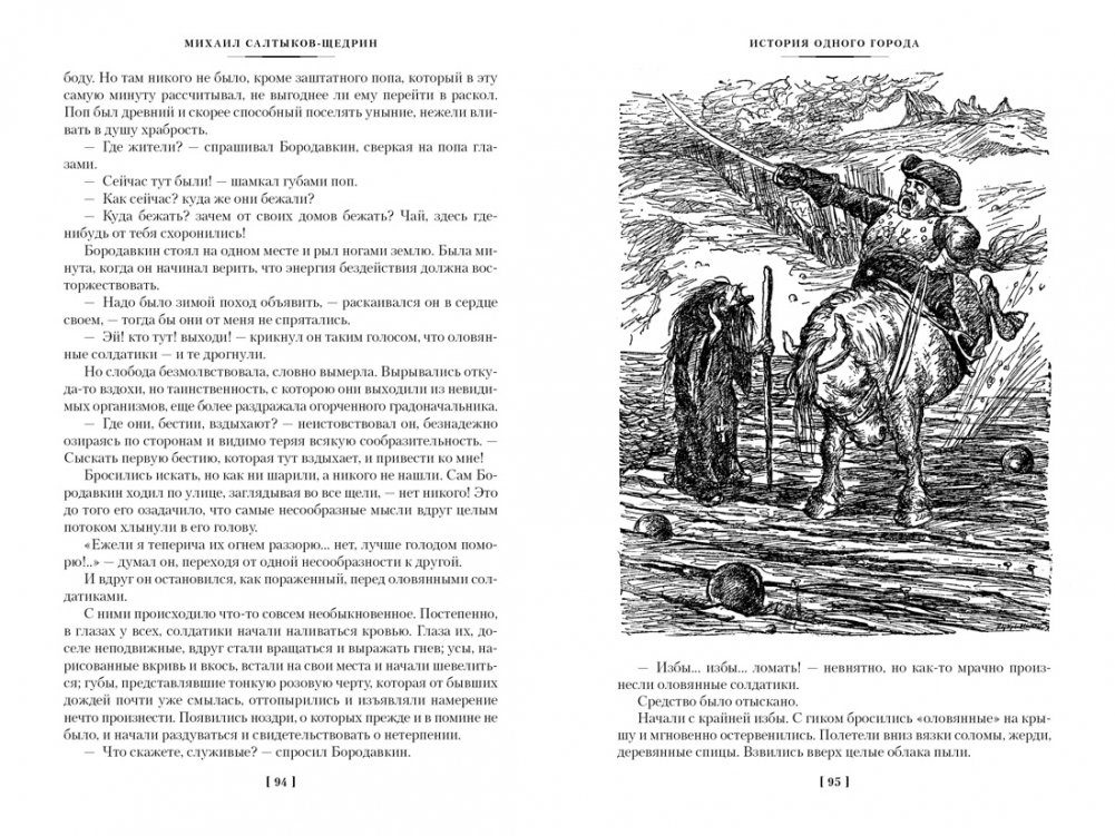 Творчество М. Е. Салтыкова-Щедрина занимает особое место в истории русской литературы. Его сатира откликалась на все значительные явления общественной жизни, безжалостно бичуя пороки, обличая ложь и нравственный упадок эпохи «великих реформ». Однако написанные на злобу дня, произведения Салтыкова-Щедрина парадоксальным образом не утрачивают своей актуальности. В настоящее издание вошли романы «История одного города» и «Господа Головлевы», а также сказки. Тексты печатаются с иллюстрациями Михаила Куприянова, Порфирия Крылова и Николая Соколова — выдающихся русских художников, совместно работавших под творческим псевдонимом Кукрыниксы, а также Николая Кузьмина.