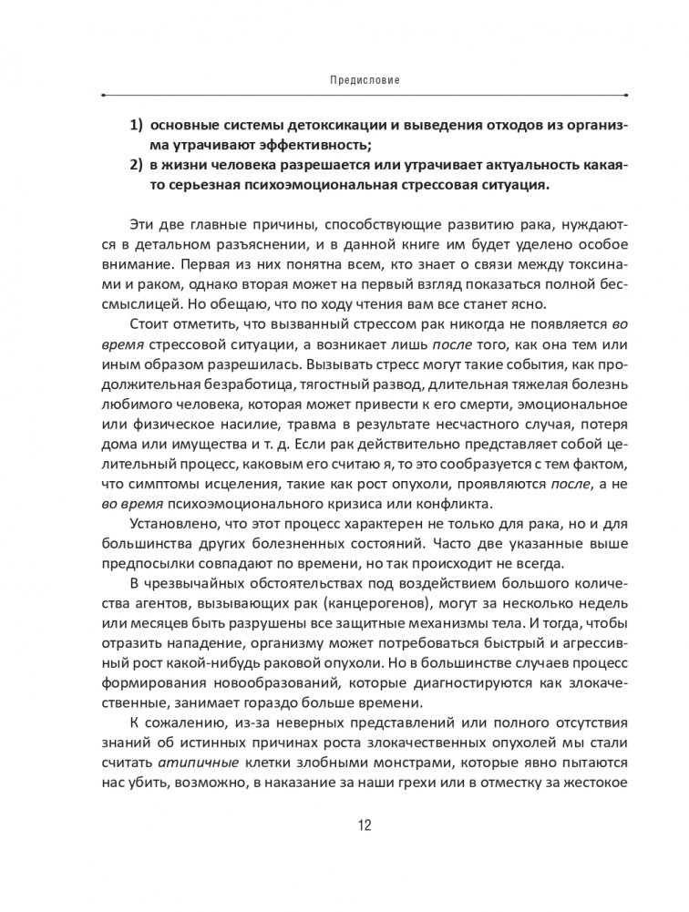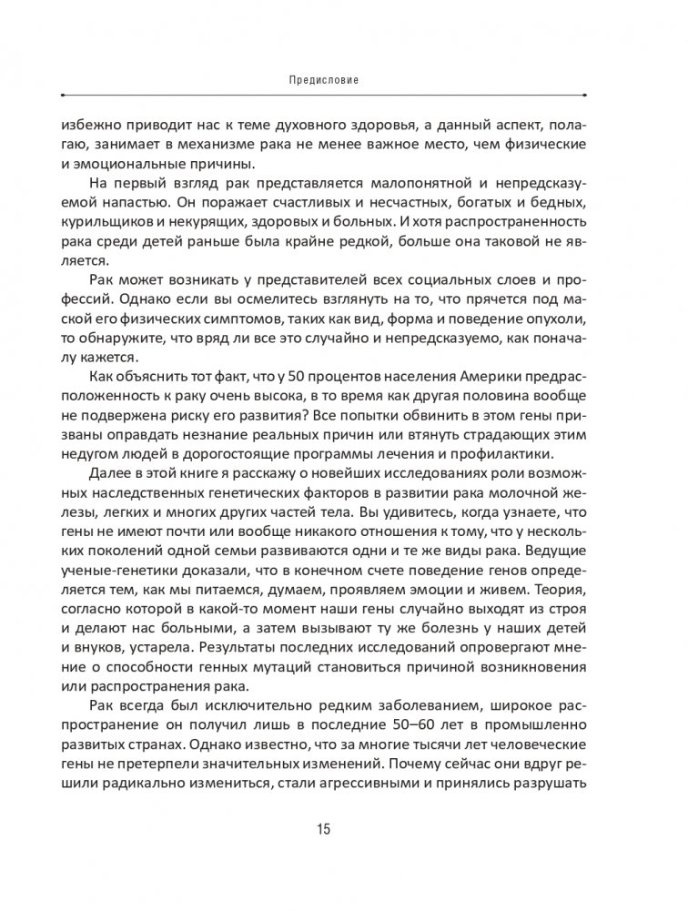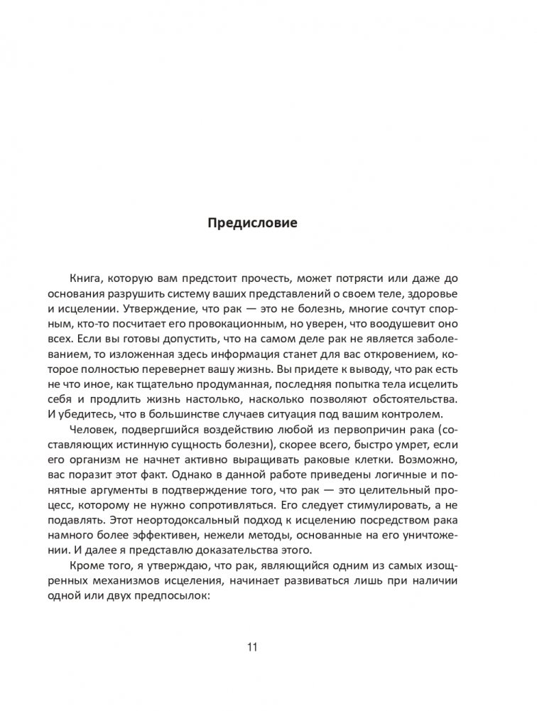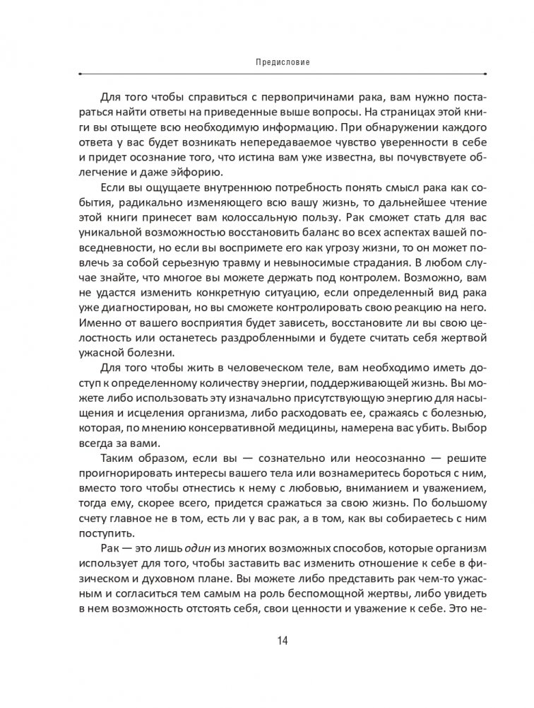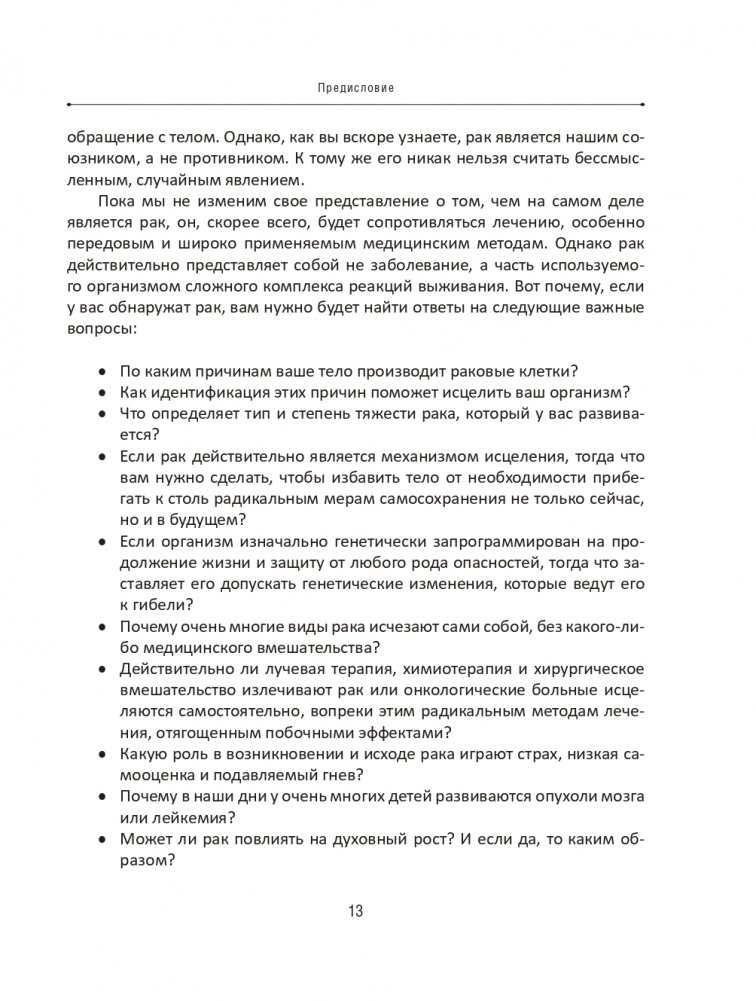 Рак не покушается на вашу жизнь, а, наоборот, пытается ее спасти. Пока мы не научимся правильно воспринимать смысл и значение рака, он будет оставаться самой серьезной угрозой жизни каждого второго человека на планете. Эта книга укажет правильный путь всем, кто желает превратиться из пассивной жертвы неизлечимой болезни в активного участника процесса создания здорового тела и разума