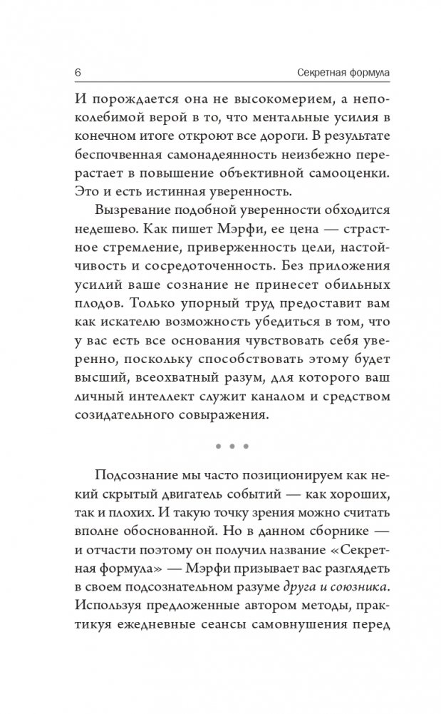 С этих избранных лекций Джозефа Мэрфи начинается серия книг под редакцией его известного последователя Митча Хоровица. В сборник включены краткая биография и хронология жизни незабвенного учителя. Как подчеркивает в предисловии составитель сборника, «ваш подсознательный разум в значительной степени формирует вашу судьбу — вот почему вы можете изменить ее сами». Для этого нужно лишь воспользоваться надежными и проверенными методами, которые описываются в «Секретной формуле» доктора Мэрфи.