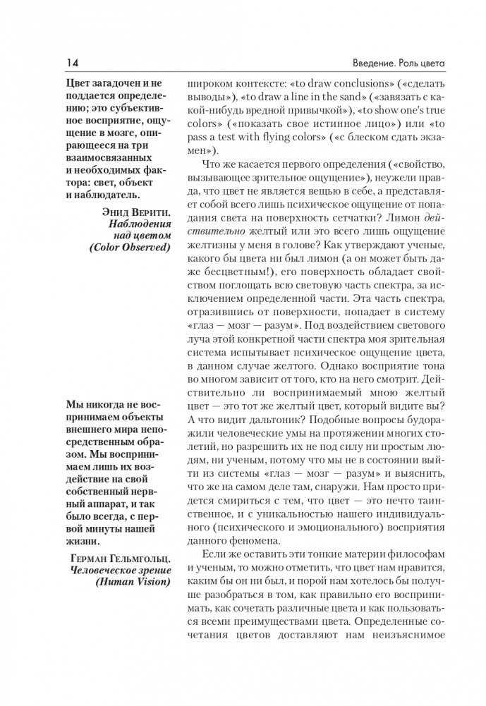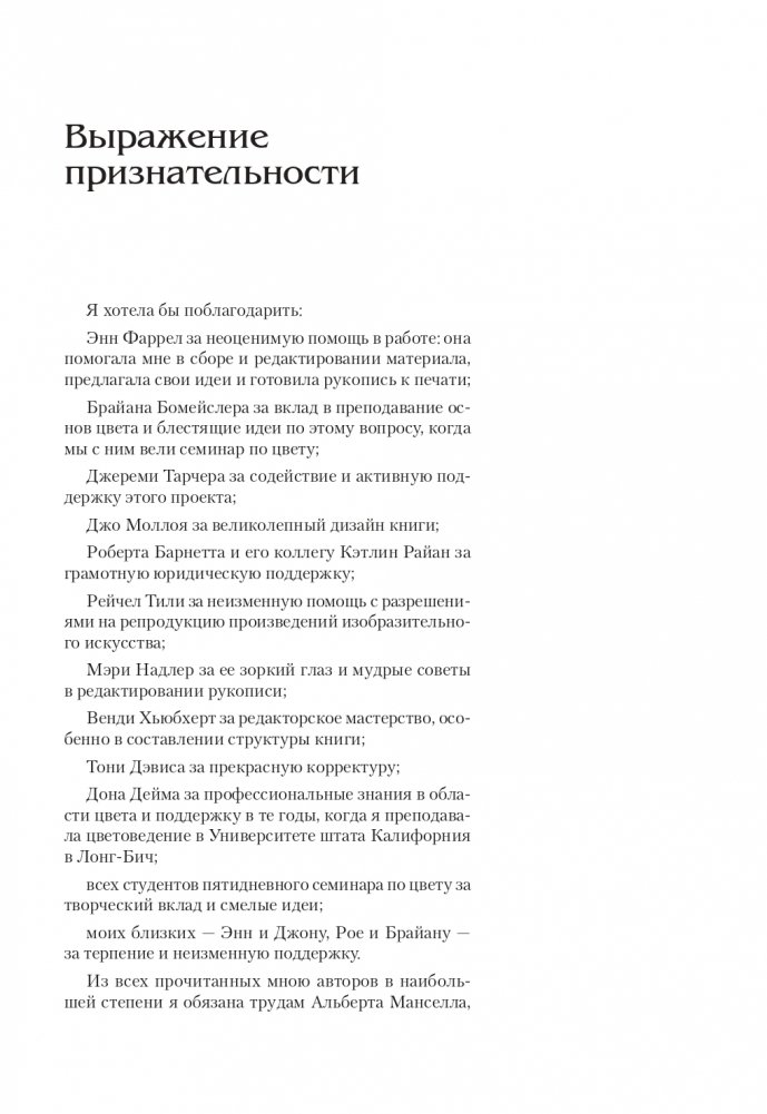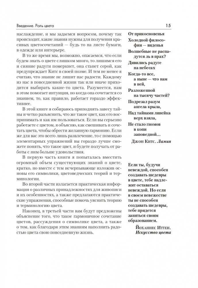 Сколь бы утонченным ни было наше восприятие цвета, как бы мы ни восхищались его красотой и разнообразием оттенков, работа с ним — задача не из легких. Эта книга — лучший выбор для тех, кто хочет разобраться в хитросплетениях цвета. Она придаст вам уверенность в использовании красок и поможет углубить свое художественное восприятие.