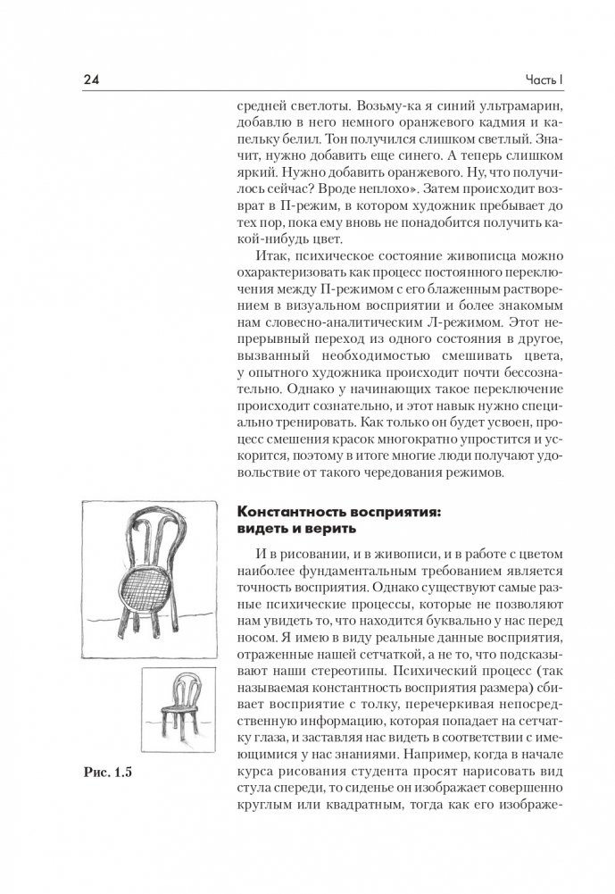 Здесь вы найдете упражнения (начиная от самых простых и постепенно переходя к самым сложным), сопровождающиеся сотнями иллюстраций. Они помогут вам разобраться, как устроен цвет, и научат видеть то, что действительно у нас перед глазами, а не то, что мы знаем о цветных объектах. Книга принесет пользу и новичкам, которые только начинают работать с цветом, и опытным художникам.