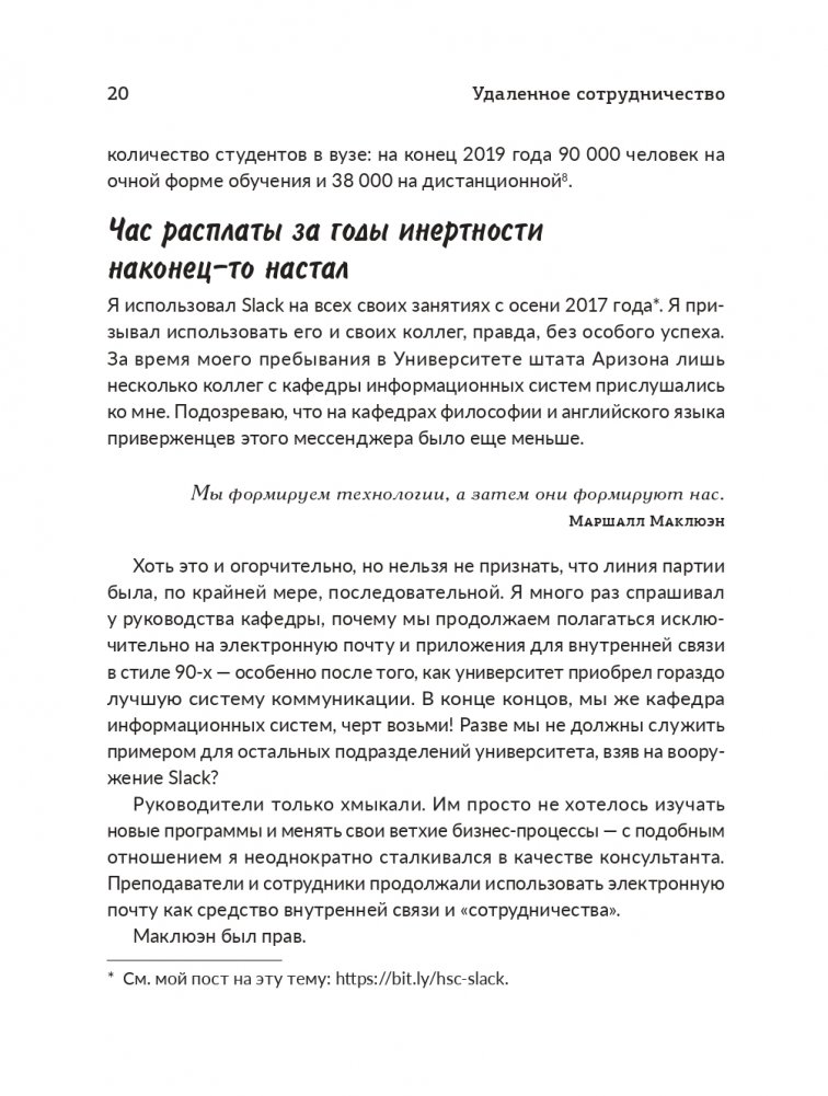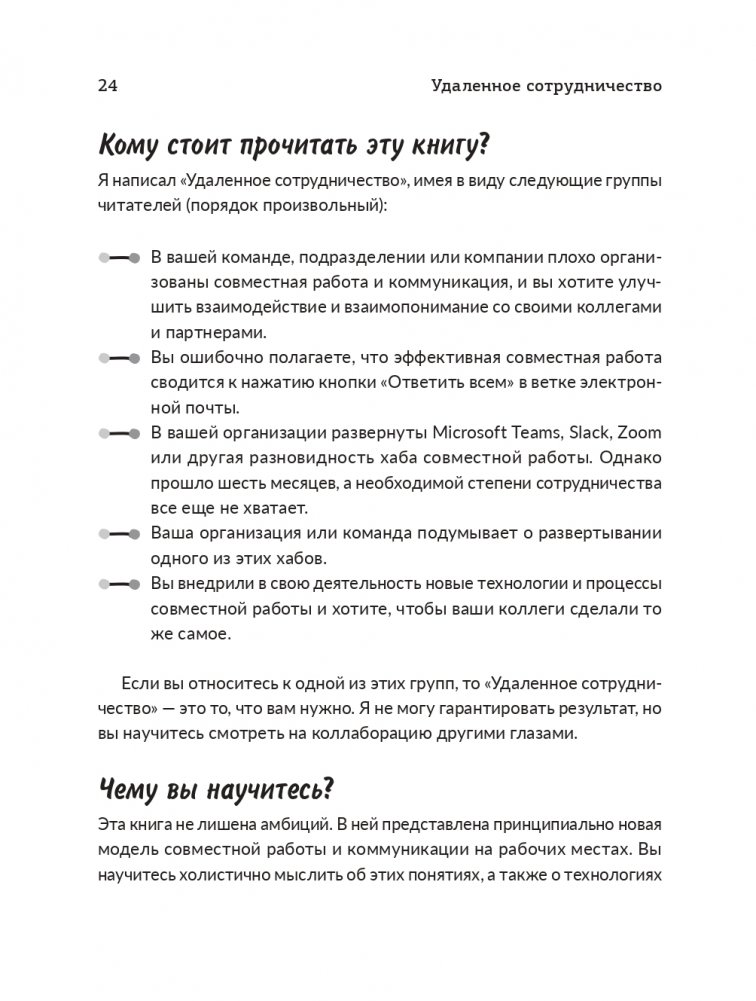 Но в этом виновато элементарное отсутствие навыков, а не злой умысел. Нам не хватало целостного, системного подхода, чтобы понять всю мощь этих новых технологий, направленных на организацию и реализацию совместной удаленной работы.