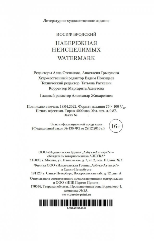 Набережная Неисцелимых. Watermark (билингва)