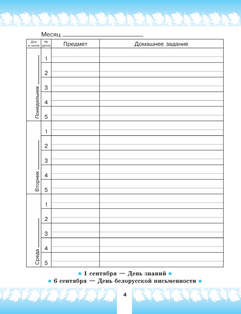 Помимо расписания уроков и домашних заданий, в «Дневничке» можно записать дополнительные мероприятия на каждую неделю, планы на каникулы, в отдельные разделы – замечания, благодарности, рекомендации учителя. В конце издания приводятся правила заполнения и ведения «Дневничка».