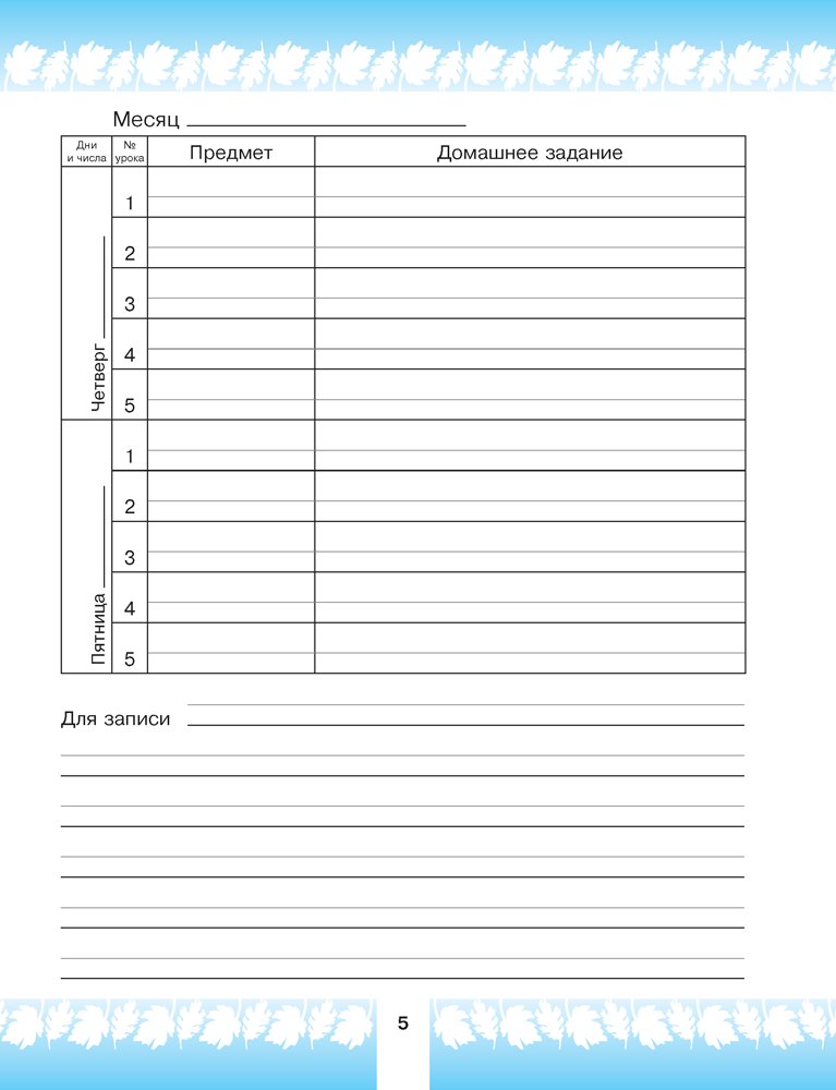 Помимо расписания уроков и домашних заданий, в «Дневничке» можно записать дополнительные мероприятия на каждую неделю, планы на каникулы, в отдельные разделы – замечания, благодарности, рекомендации учителя. В конце издания приводятся правила заполнения и ведения «Дневничка».