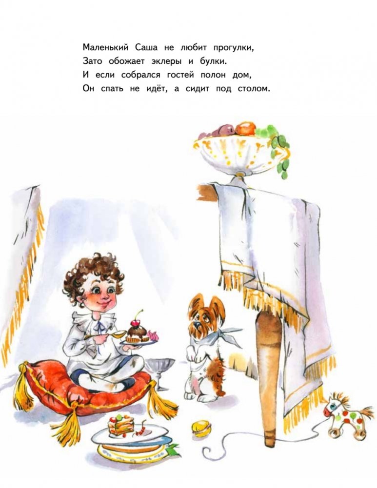 Знакомьтесь: это Саша Пушкин! Обычный мальчишка, который любит сладости, порой шалит и не слушается родителей. Саше не очень нравится учиться — ему бы сказки слушать, мечтать и сочинять свои истории. И дома, и в лицее он не отличается образцовым поведением. Но у маленького Саши есть характер, способности и стремления. И скоро его ждёт великое будущее — как и всех наших детей.