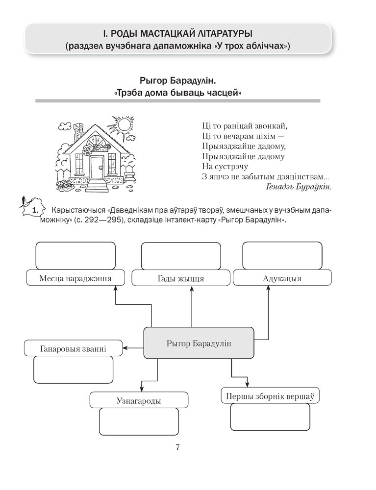 Сшытак падрыхтаваны ў адпаведнасці з праграмай па беларускай літаратуры. Ён дапаўняе вучэбны дапаможнік і змяшчае заданні розных узроўняў складанасці, якія маюць творчы характар, развіваюць здольнасці вучняў. Сшытак дасць магчымасць замацаваць і праверыць набытыя на ўроку веды.