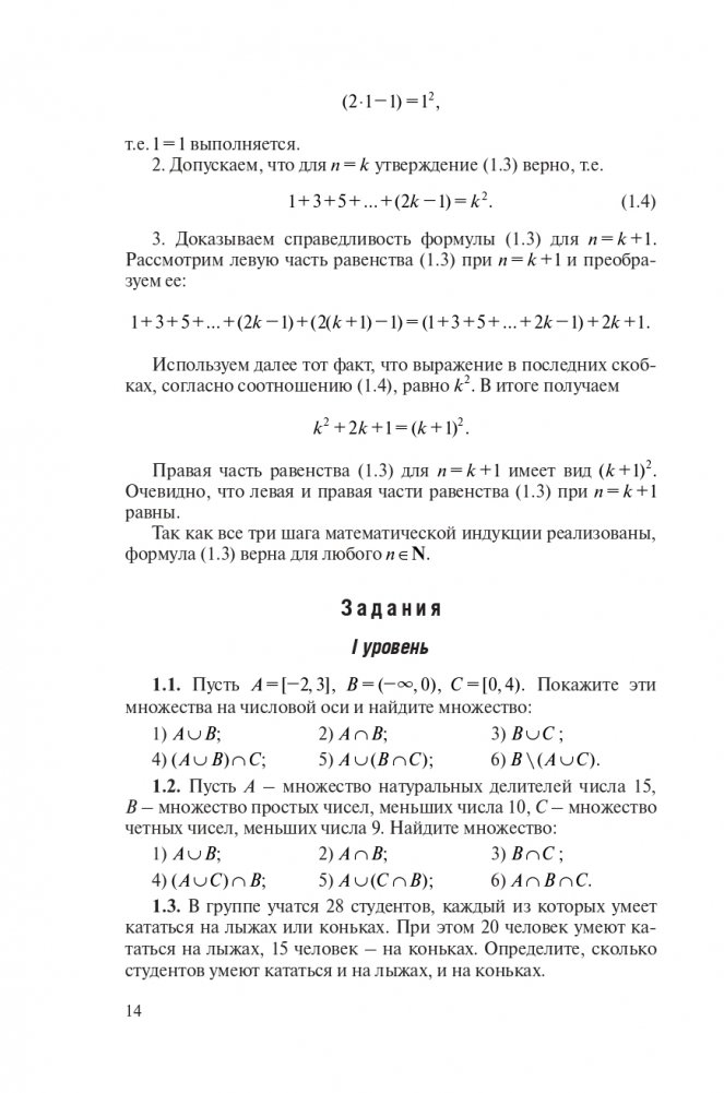 В учебном пособии содержатся теоретические сведения, решения типовых примеров и задания трех уровней сложности по линейной и векторной алгебре, аналитической геометрии, математическому анализу и дискретной математике.