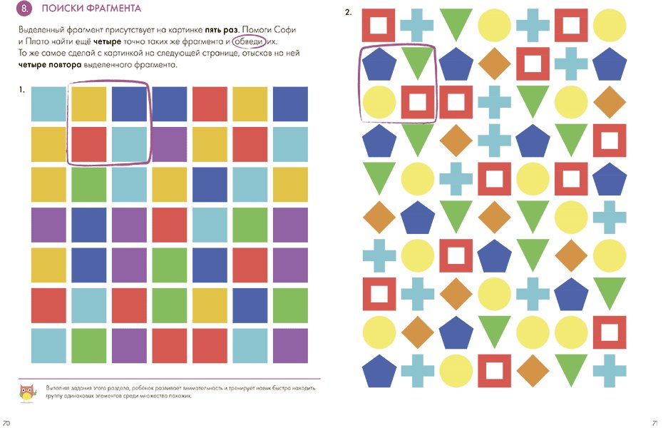 Книга нацелена на развитие умственных способностей ребенка: навыки сравнения, анализа, синтеза, абстракции, конкретизации, индукции и дедукции