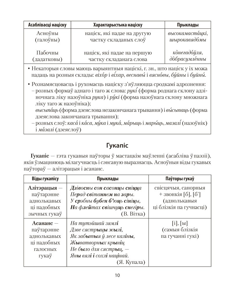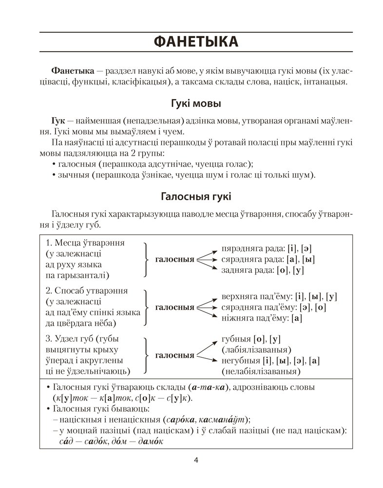 У дапаможніку ў форме табліц і схем сістэматызаваны тэарэтычныя звесткі па ўсіх асноўных раздзелах школьнага курса беларускай мовы.