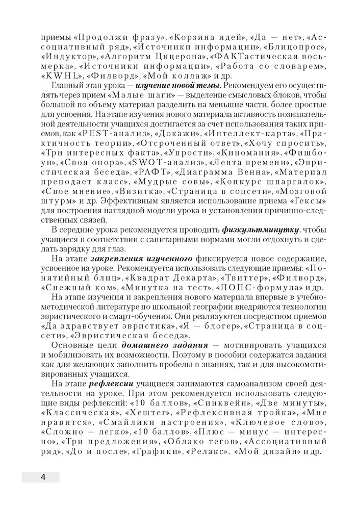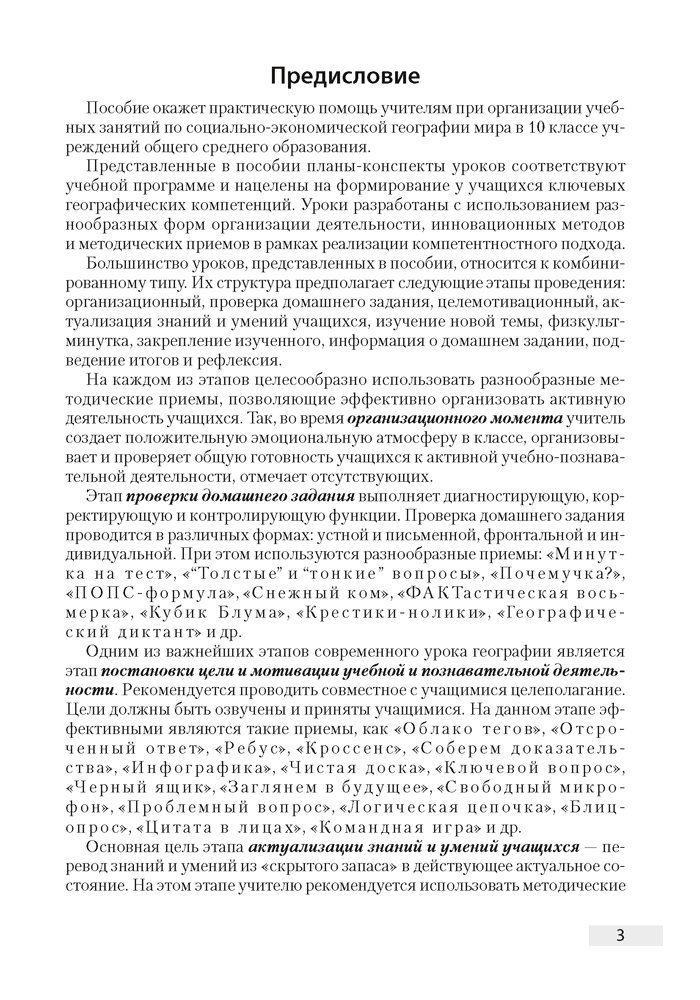 Представленные в пособии планы-конспекты уроков соответствуют учебной программе и нацелены на формирование у учащихся ключевых географических компетенций. Уроки разработаны с использованием разнообразных форм организации деятельности, инновационных методов и методических приемов в рамках реализации компетентностного подхода.