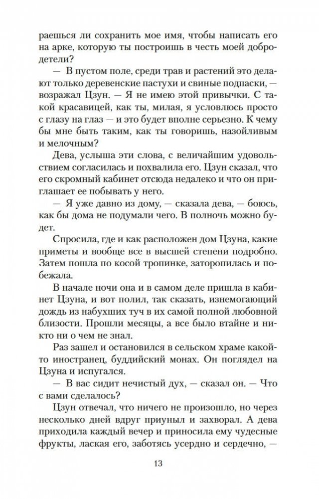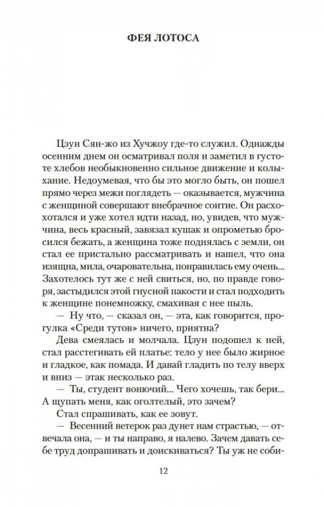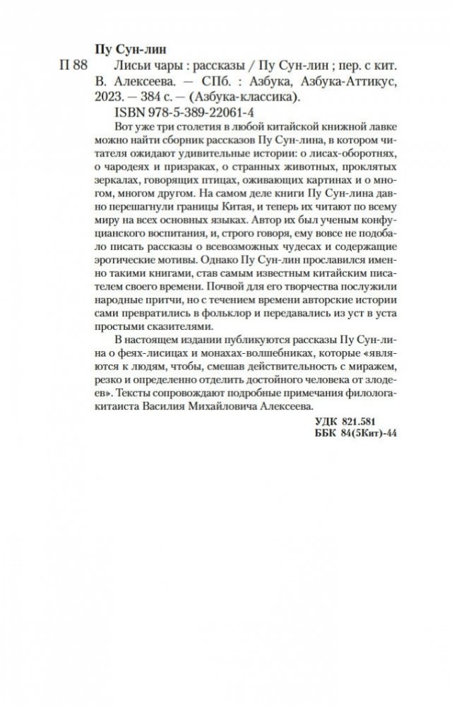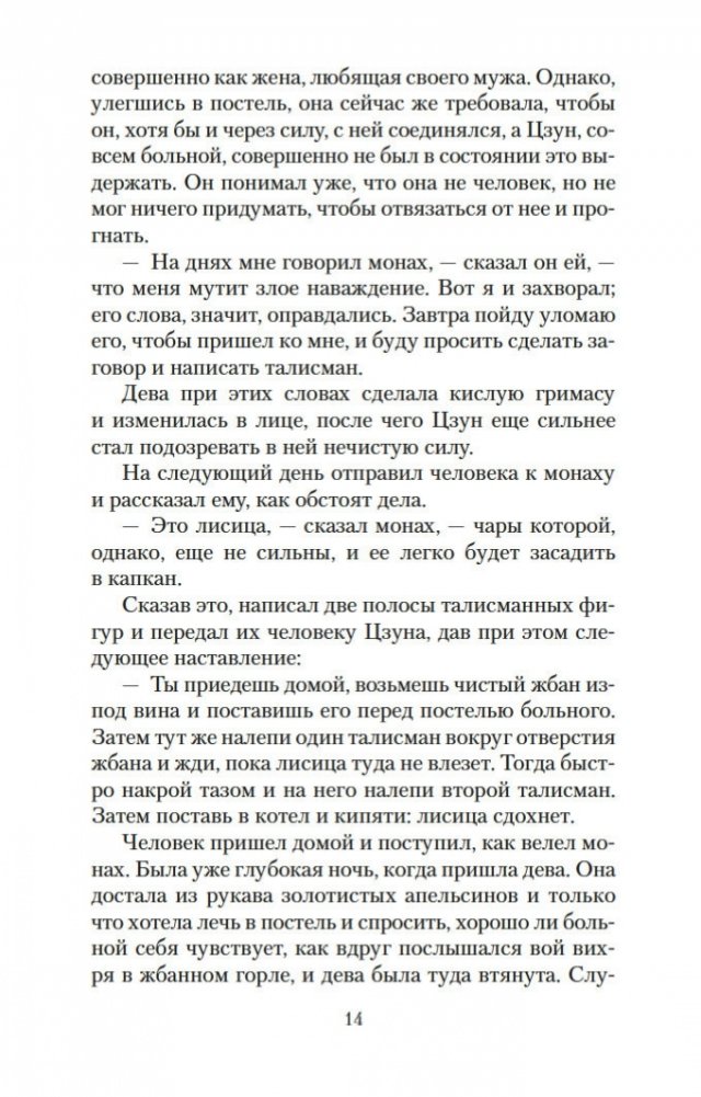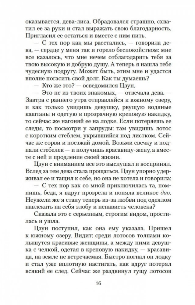 Вот уже три столетия в любой китайской книжной лавке можно найти сборник рассказов Пу Сун-лина, в котором читателя ожидают удивительные истории: о лисах-оборотнях, о чародеях и призраках, о странных животных, проклятых зеркалах, говорящих птицах, оживающих картинах и о многом, многом другом. На самом деле книги Пу Сун-лина давно перешагнули границы Китая, и теперь их читают по всему миру на всех основных языках. Автор их был ученым конфуцианского воспитания, и, строго говоря, ему вовсе не подобало писать рассказы о всевозможных чудесах и содержащие эротические мотивы. Однако Пу Сун-лин прославился именно такими книгами, став самым известным китайским писателем своего времени. Почвой для его творчества послужили народные притчи, но с течением времени авторские истории сами превратились в фольклор и передавались из уст в уста простыми сказителями. В настоящем издании публикуются рассказы Пу Сун-лина о феях-лисицах и монахах-волшебниках, которые «являются к людям, чтобы, смешав действительность с миражем, резко и определенно отделить достойного человека от злодеев». Тексты сопровождают подробные примечания филолога-китаиста Василия Михайловича Алексеева.