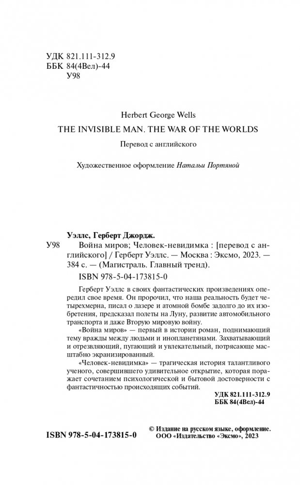 «Война миров» — первый в истории роман, поднимающий тему вражды между людьми и инопланетянами. Захватывающий и отрезвляющий, пугающий и увлекательный, потрясающе масштабно экранизированный.