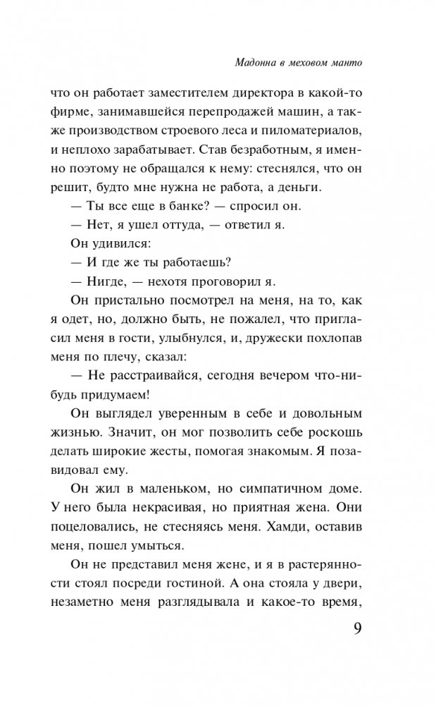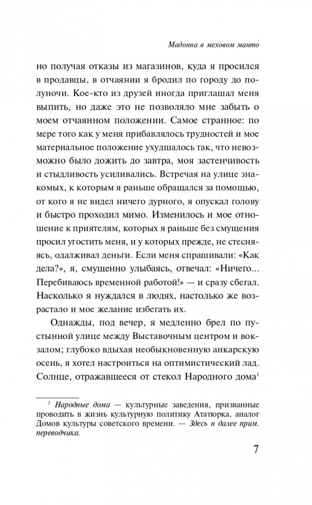 «Мадонна в меховом манто» — пронзительная «ремарковская» история любви Раифа-эфенди — отпрыска богатого османского рода, волею судьбы превратившегося в мелкого служащего, и немецкой художницы Марии. Действие романа разворачивается в 1920-е годы прошлого века в Берлине и Анкаре, а его атмосфера близка к предвоенным романам Эриха Марии Ремарка.